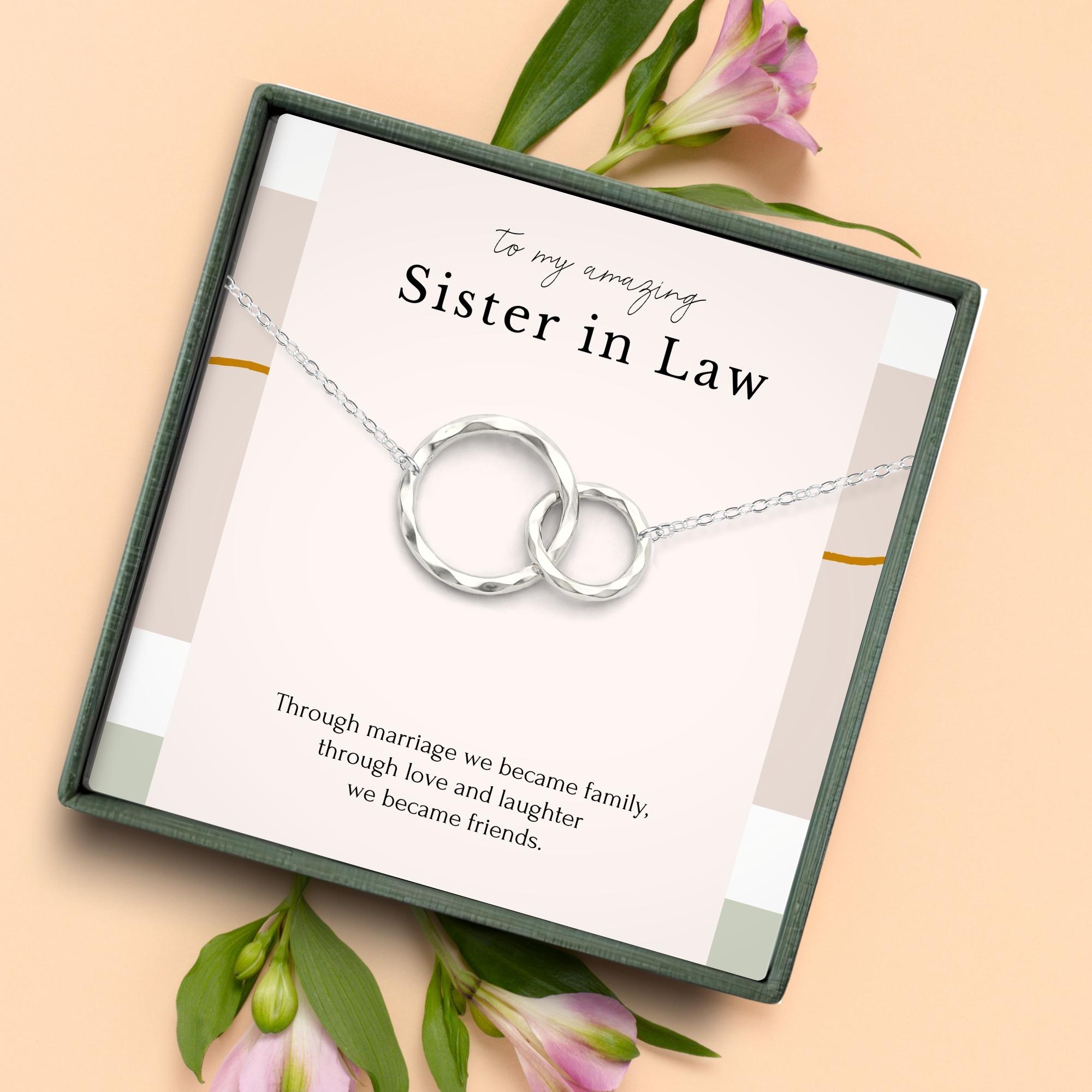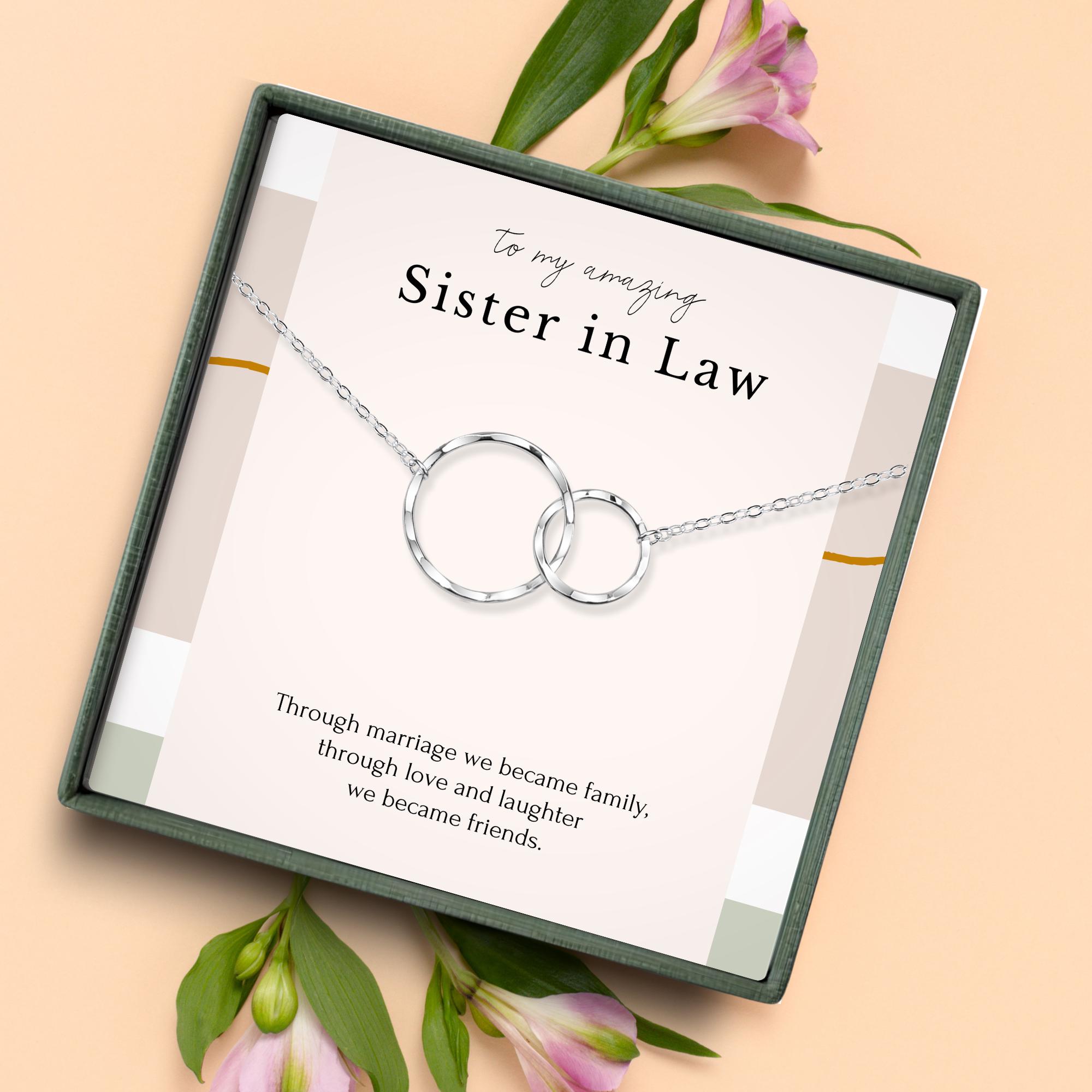 One of the greatest gifts of getting married is the new family that comes with it. Let your new sister in law know how happy you are to be a part of her family with this stunning interlocking circles necklace. With an option to choose either interlocking circles or a pearl necklace, there is something to fit every style. Beautifully packaged with a meaningful message, this is a gift that comes from the heart.