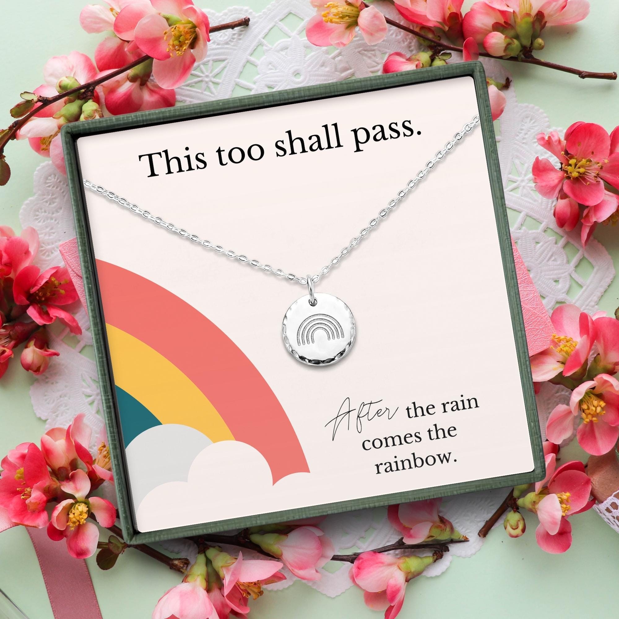 Get well soon gift box necklace for women, Unique Get well gift for her with card message, After the rain comes the rainbow necklace Infinity necklace in Gold filled, Sterling Silver