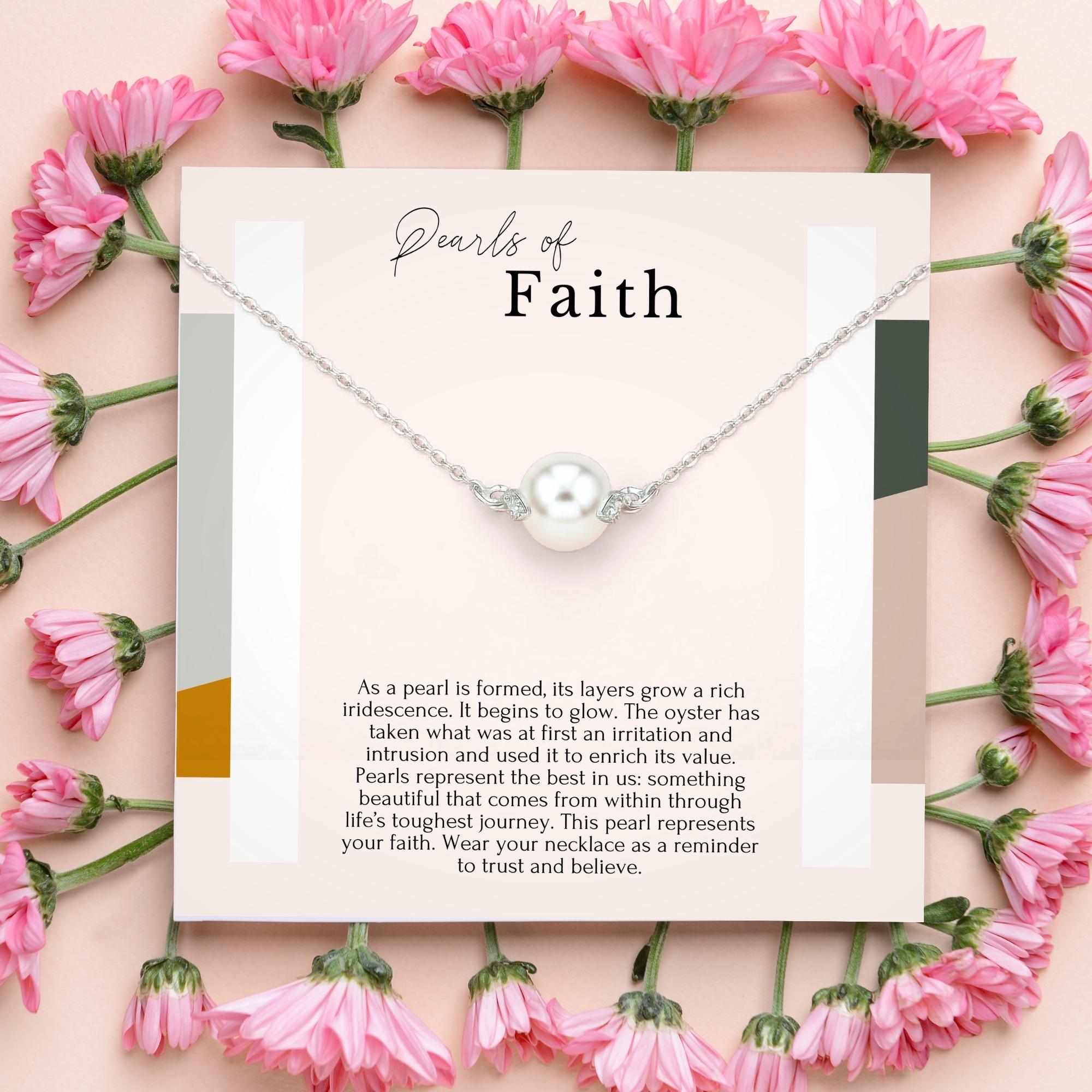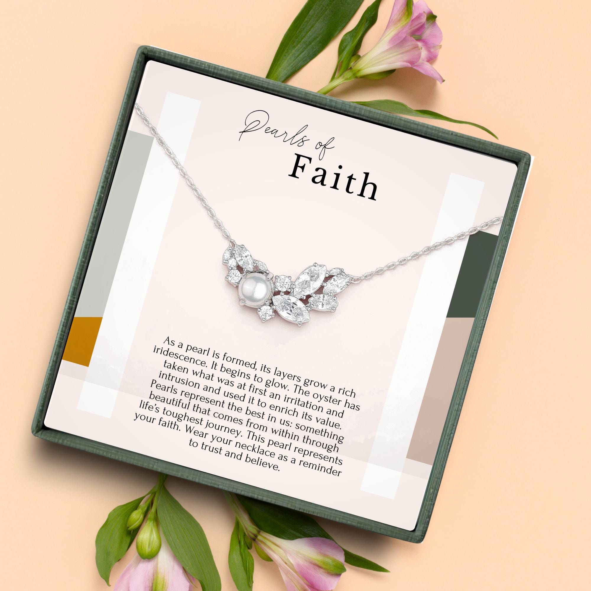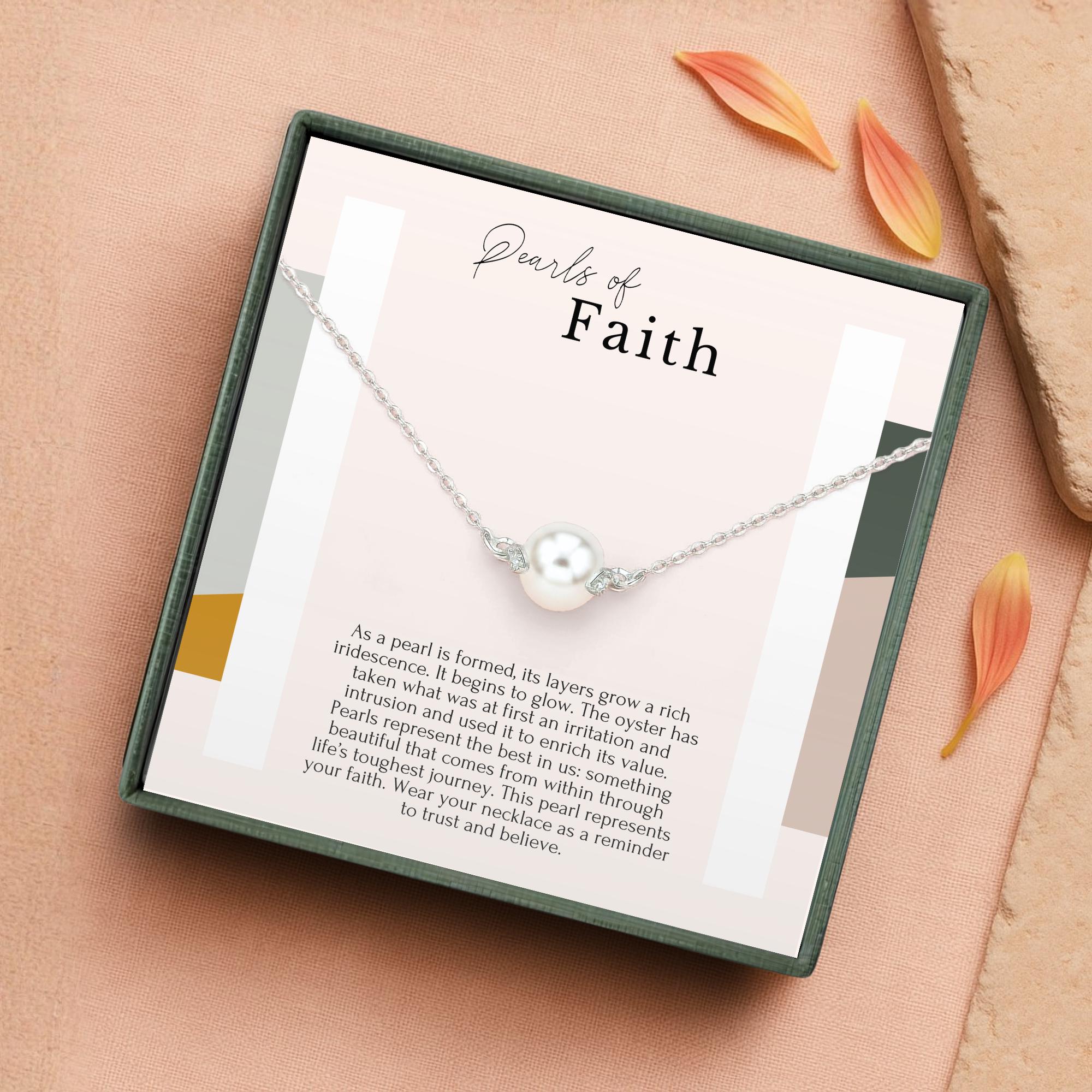 cancer recovery gift, pearl of faith necklace, healing strength jewelry, spiritual gift for women, dainty sterling silver necklace, mental illness encouragement, faith jewelry gift, single pearl necklace, hope love shine pearl, illness recovery necklace, emotional support gift