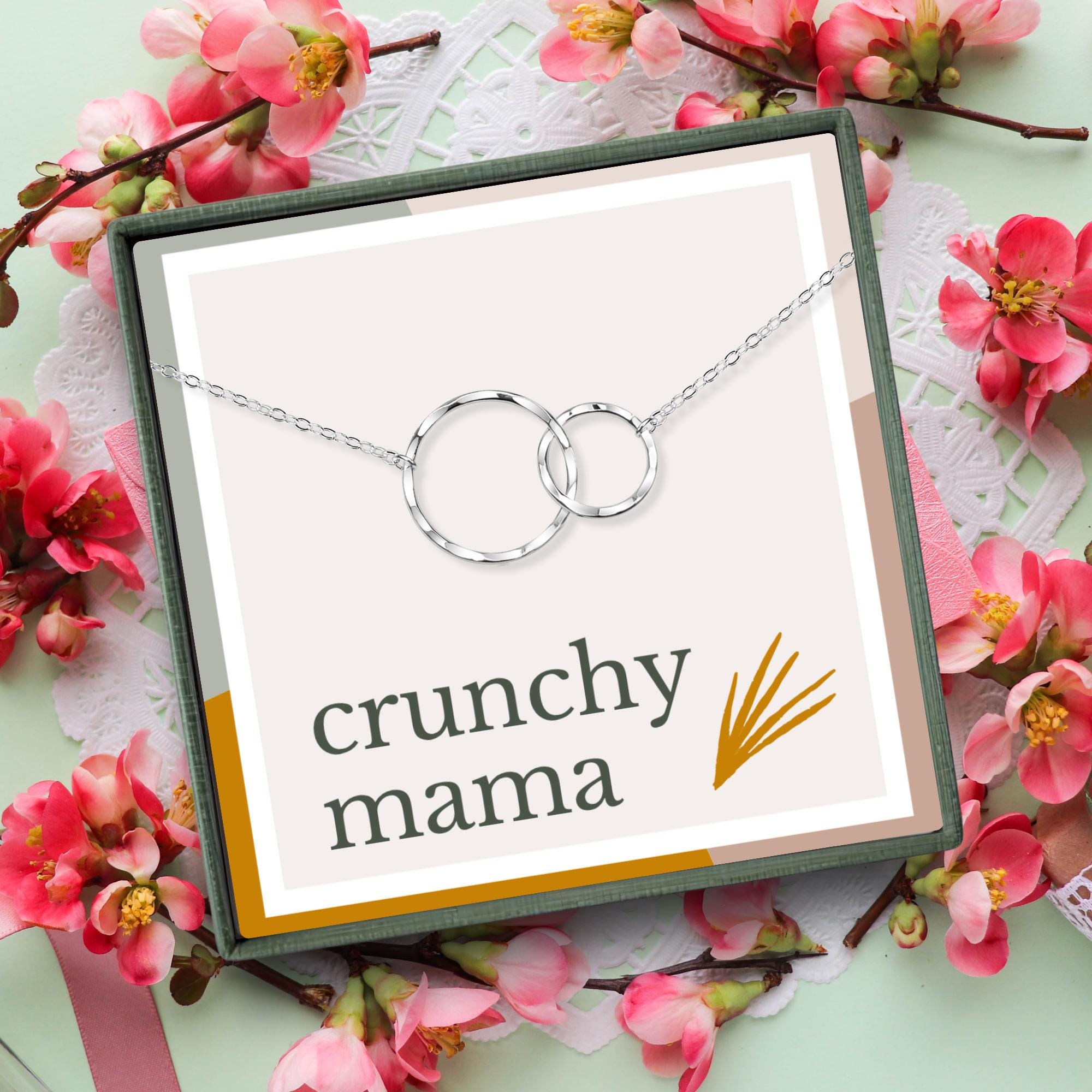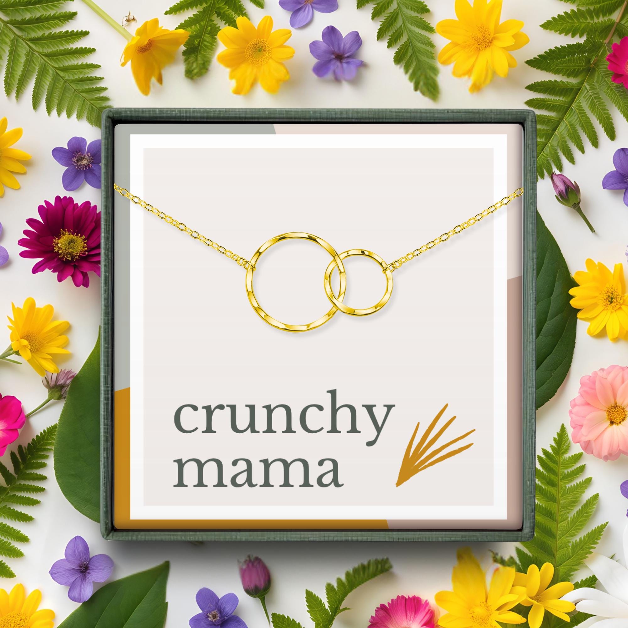 Celebrate the spirit of natural motherhood with our "Crunchy Mama" necklace — a heartfelt tribute to moms who embrace a holistic lifestyle. Whether she's breastfeeding, babywearing, co-sleeping, or simply following her intuition, this minimalist necklace honors the strength, intention, and love she pours into her journey. Crafted in 18k Gold Dipped in Sterling Silver, the necklace is dainty enough for everyday wear yet powerful in meaning. A beautiful way to support and recognize a new mom, a mom-to-be, or a seasoned earthy mama who lives with purpose. This piece makes a perfect baby shower gift, Mother's Day present, or a sweet surprise from one mama to another.