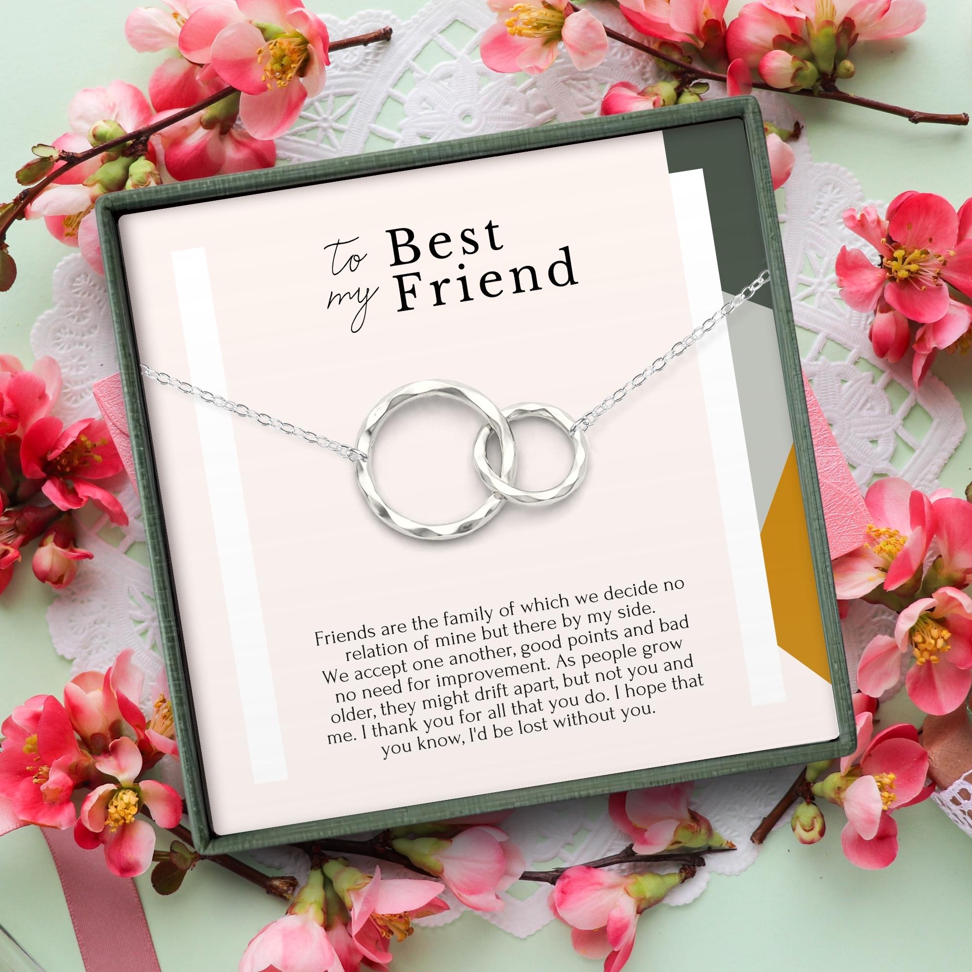 Best Friend necklace gift message, long distance Best Friend Gift Jewelry, Quotes, Friendship, interlocking circle necklace