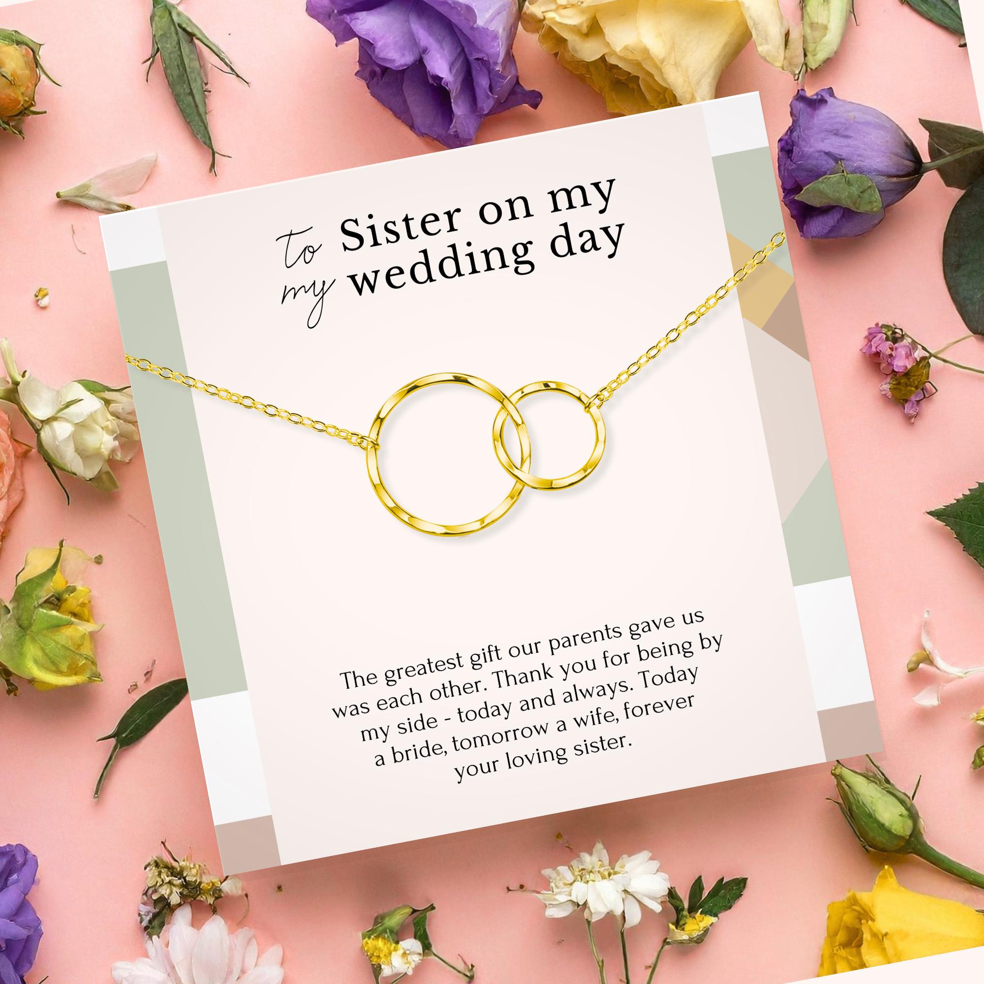 Sister Wedding Gift from Sister, Sister Wedding day gift necklace with message, Rehearsal Dinner Gift for sister, Gold, Silver necklace