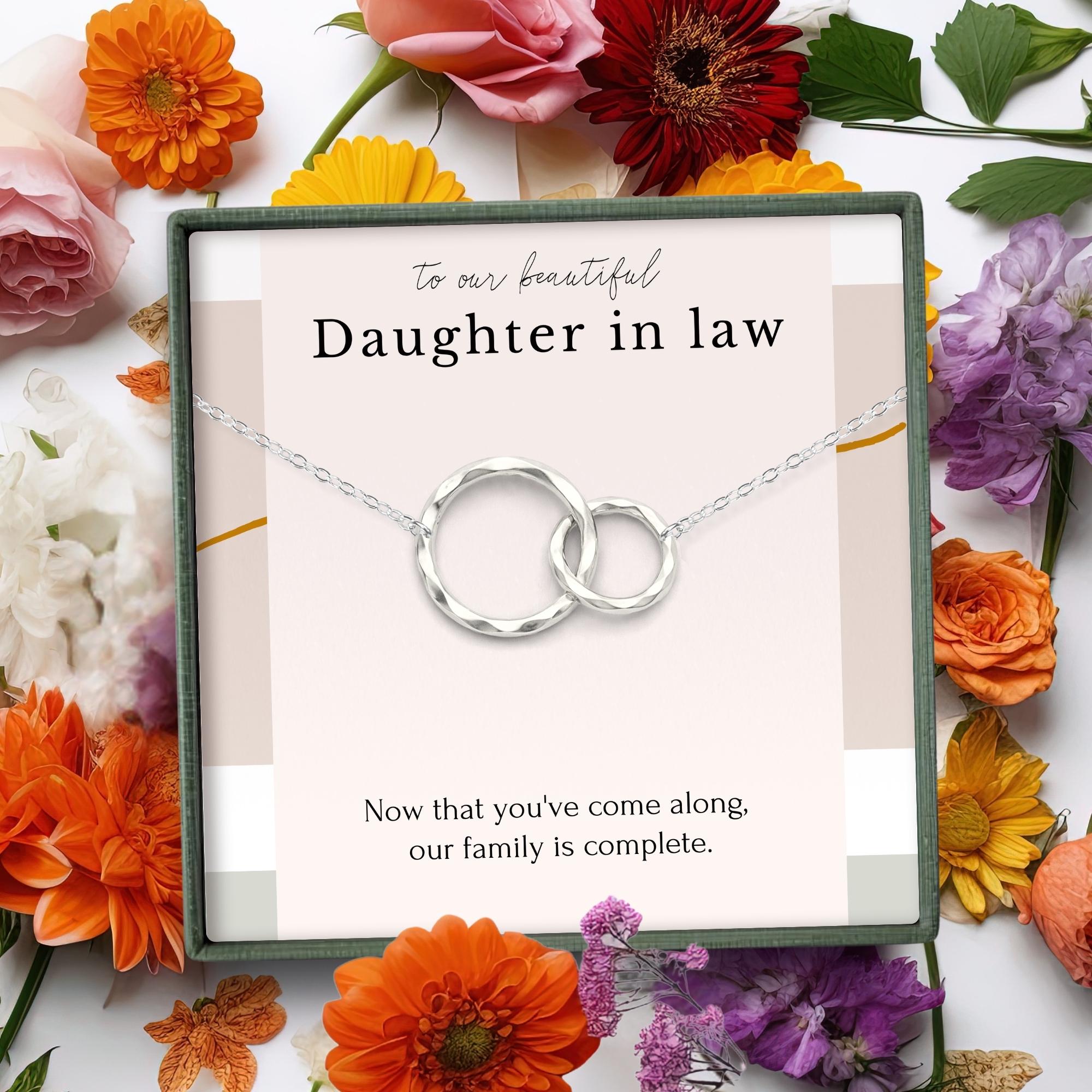 daughter-in-law wedding gift, gold ring necklace, silver double ring necklace, wedding jewelry from in-laws, meaningful bride gift, modern family keepsake, gift for daughter-in-law from mother-in-law