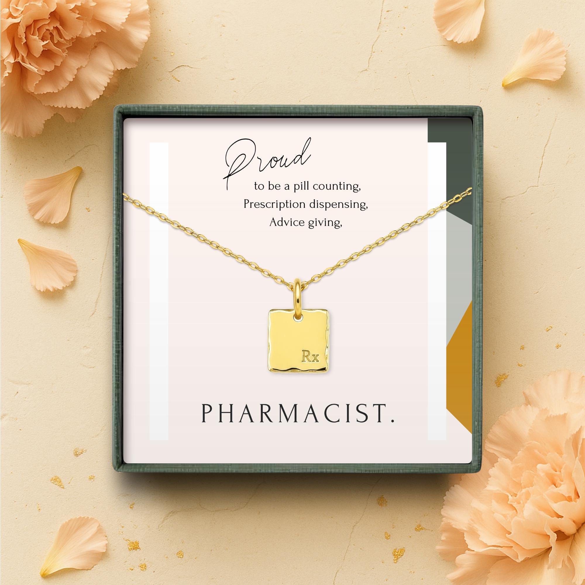 Pharmacist Gift, Pharmacist Necklace Gift, Pharmacist Retirement Gift, Rx Charm 14K gold-vermeil, Sterling Silver necklace