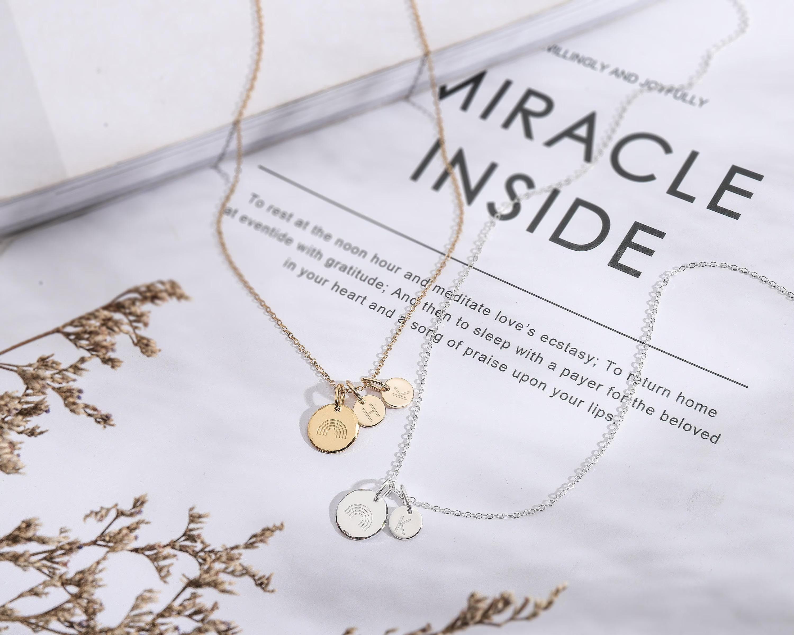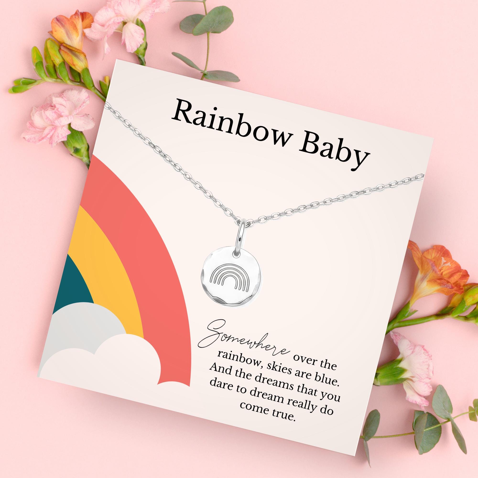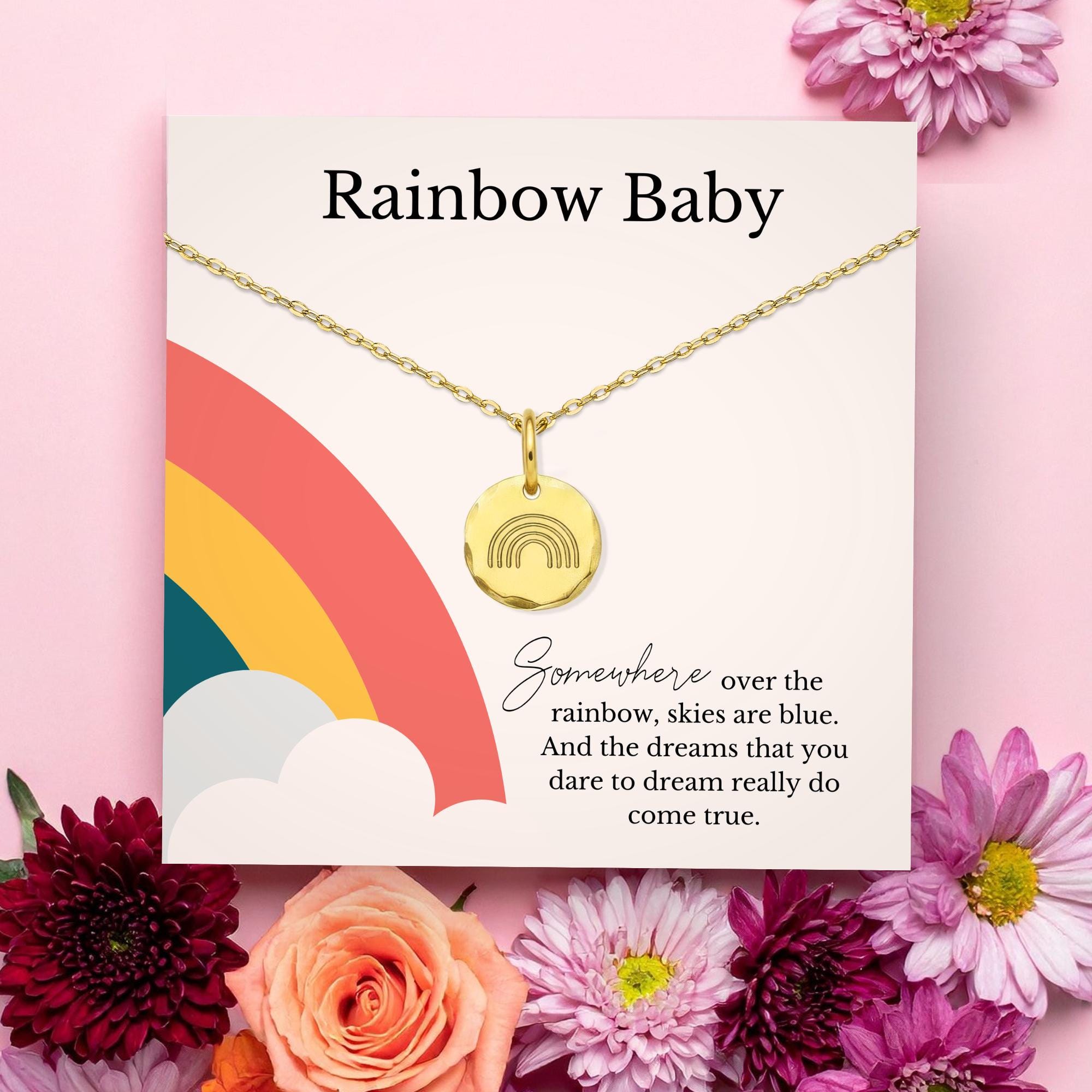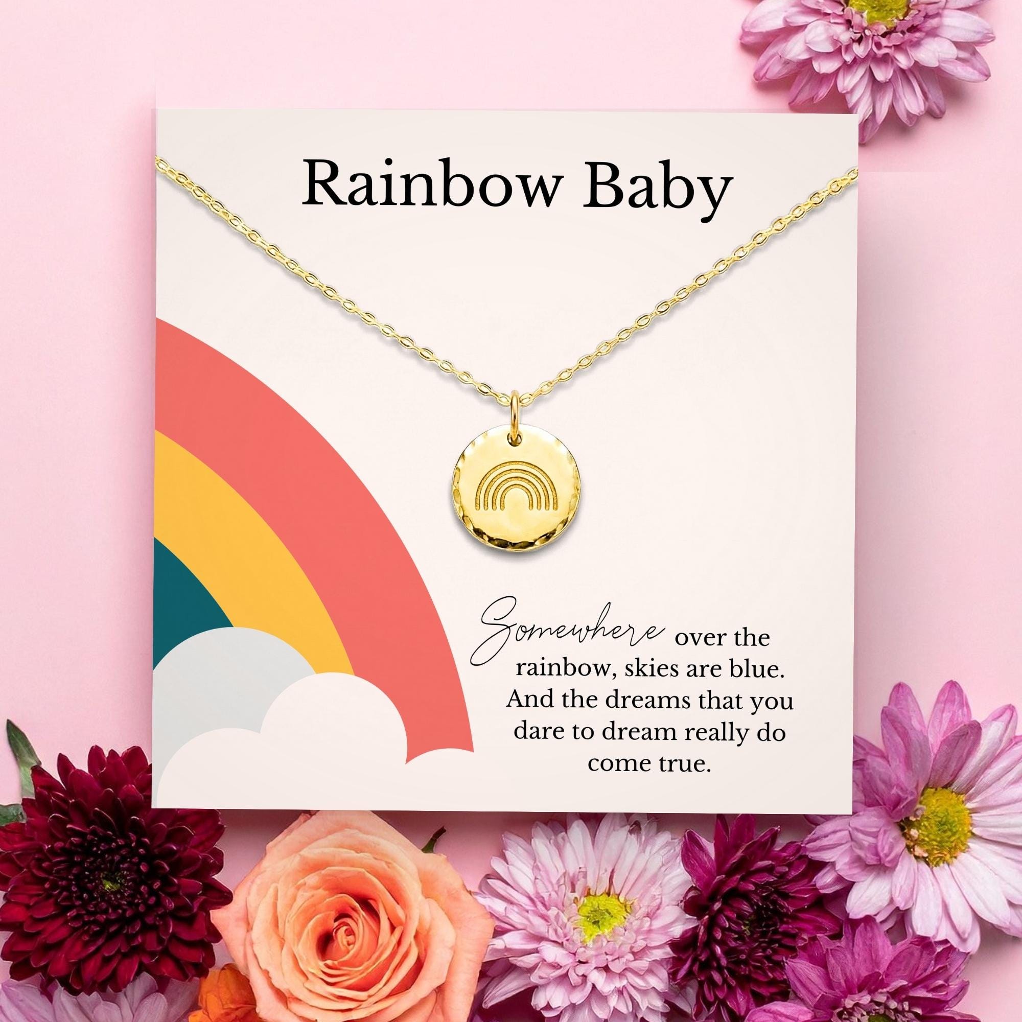 Rainbow Baby Gift for Mom, Hand stamped initial personalized necklace in 14k gold vermeil, Sterling silver