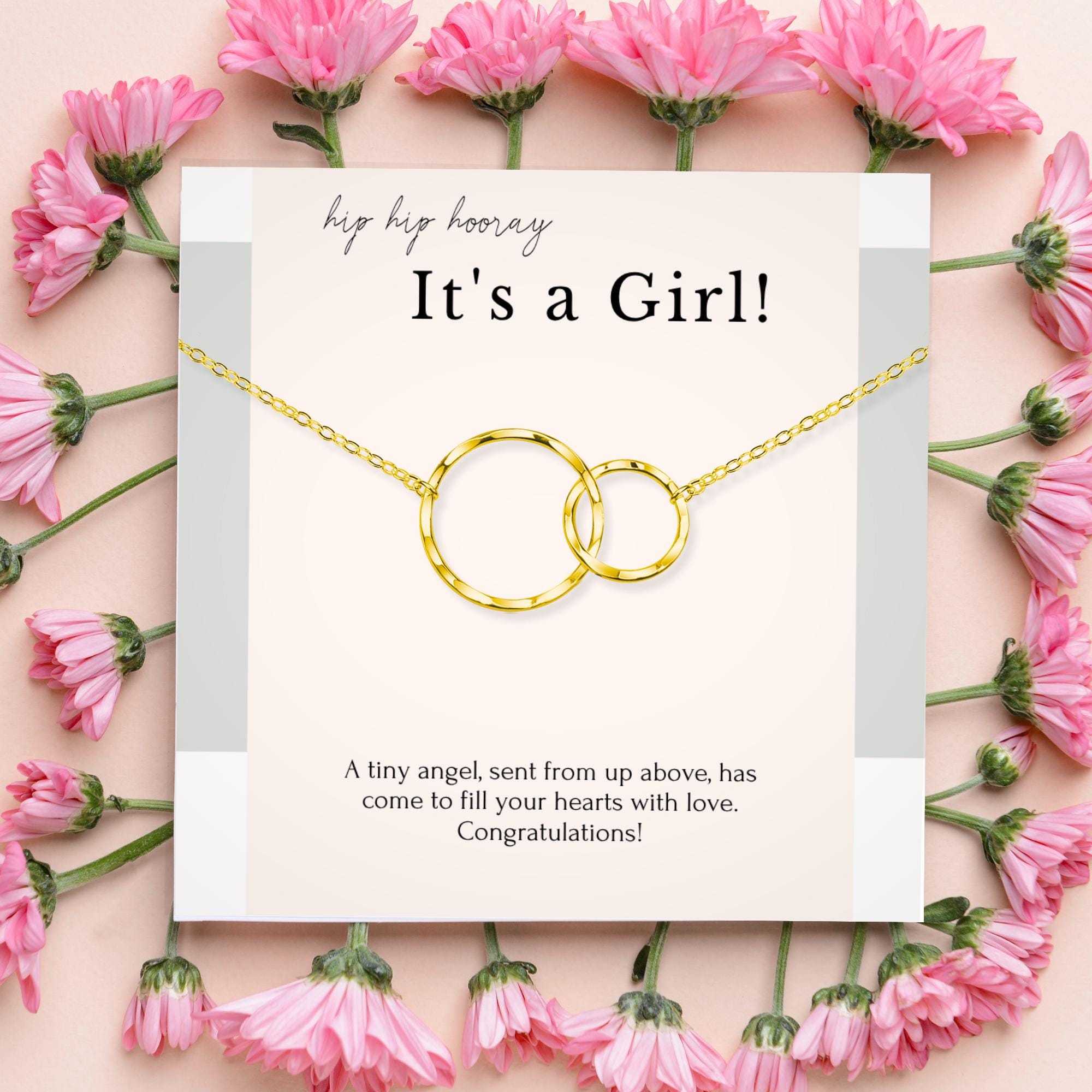 It's a Girl Necklace gift for mom, Baby Girl shower gift, New Mom Gift, Gift for New Baby, Newborn Gift, 14K gold vermeil, Sterling Silver