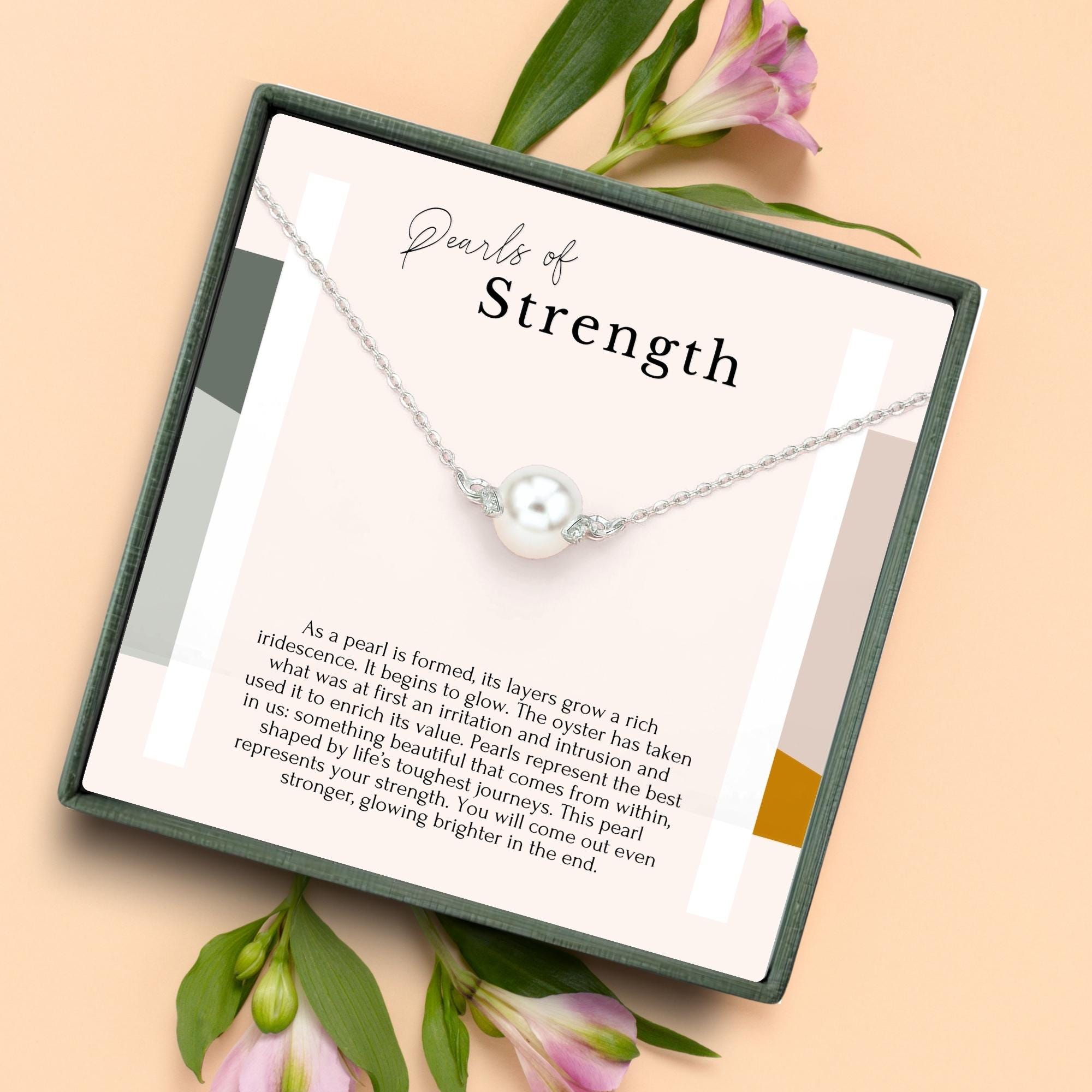 Pearl of Strength necklace gift in Sterling silver, Encouragement gift for women.