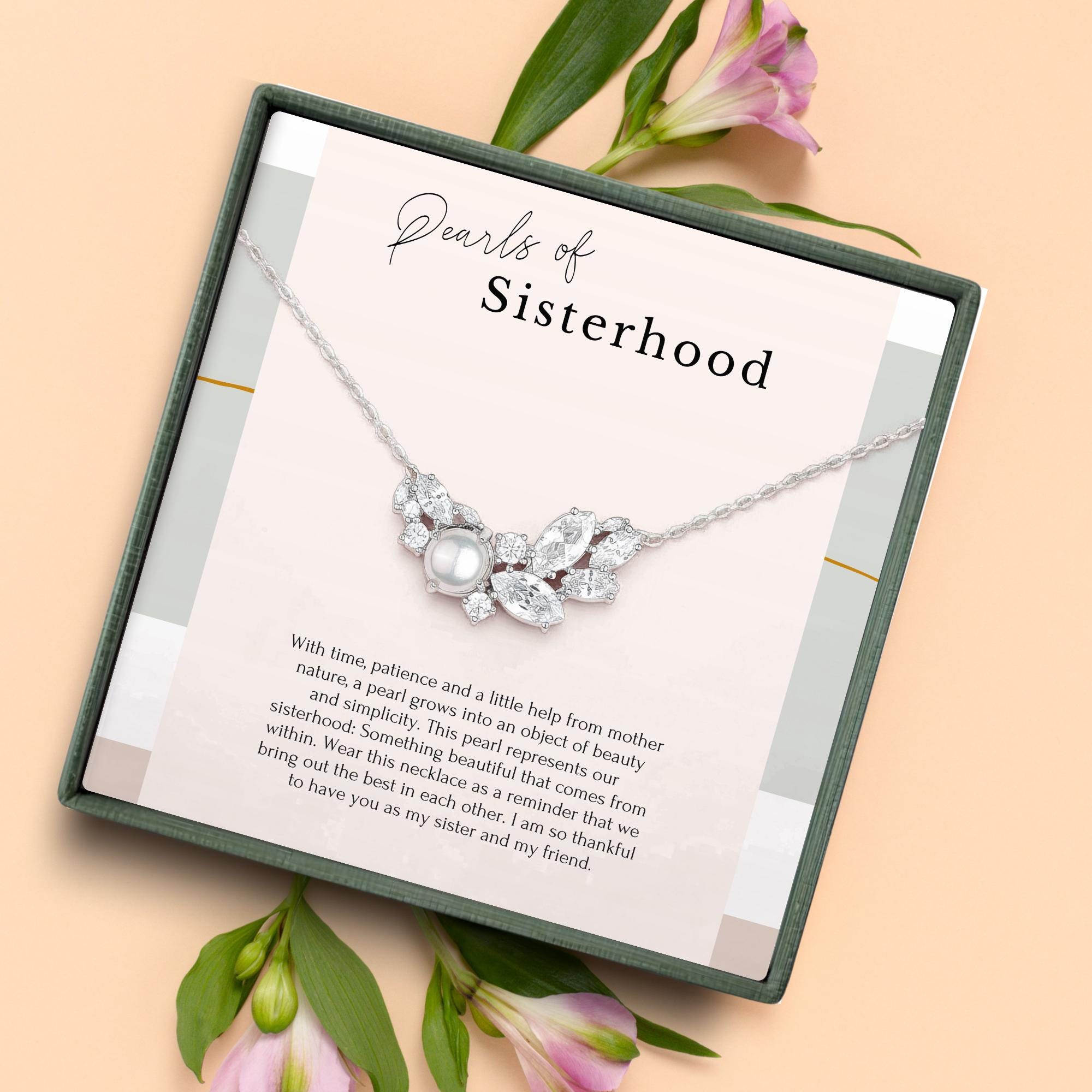 Dainty Pearl Sister necklace gift, Bridesmaid necklace gift, Sisterhood Sorority necklace in Sterling Silver