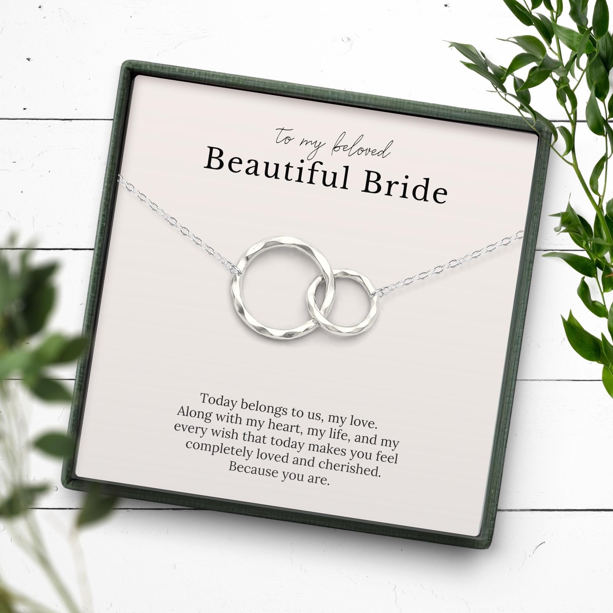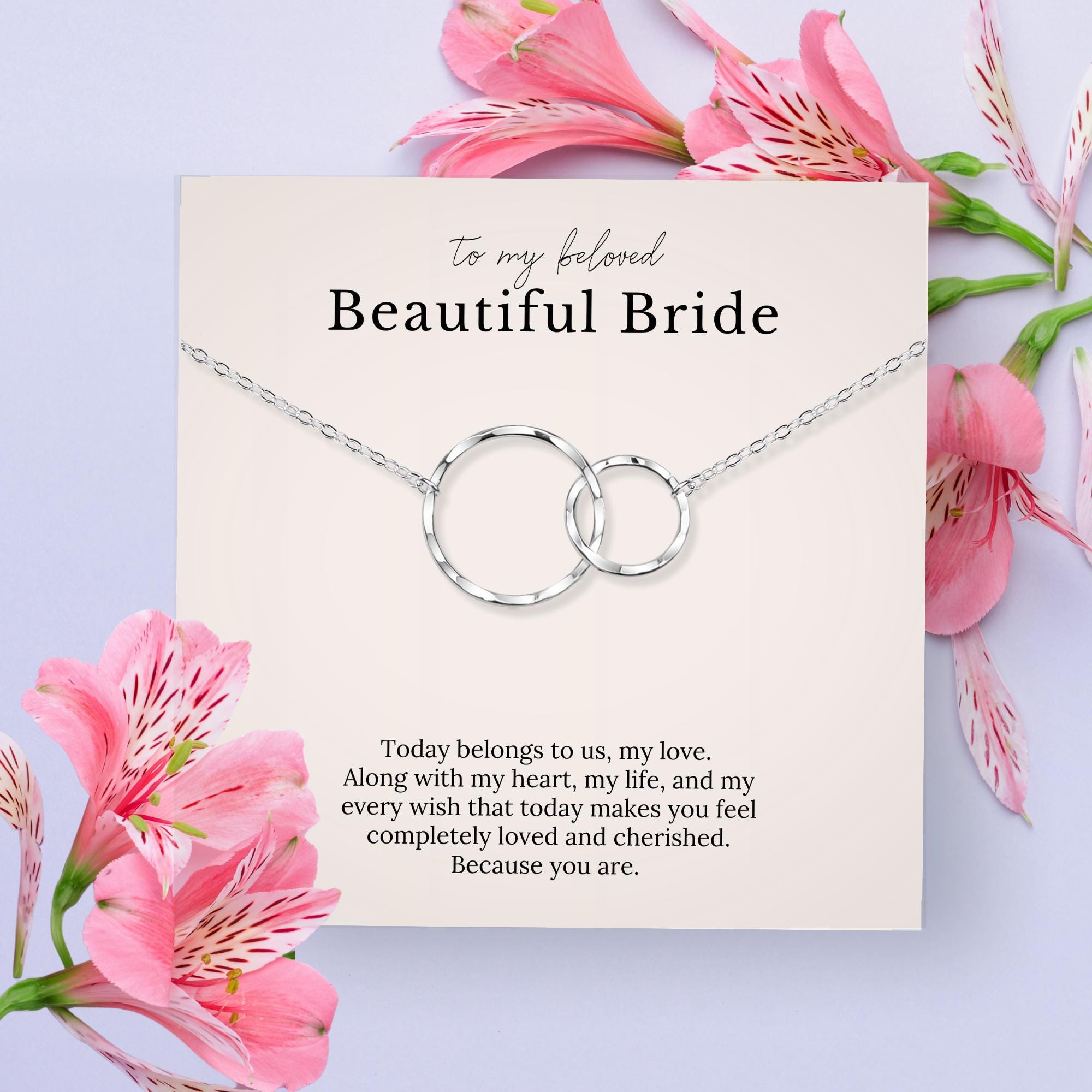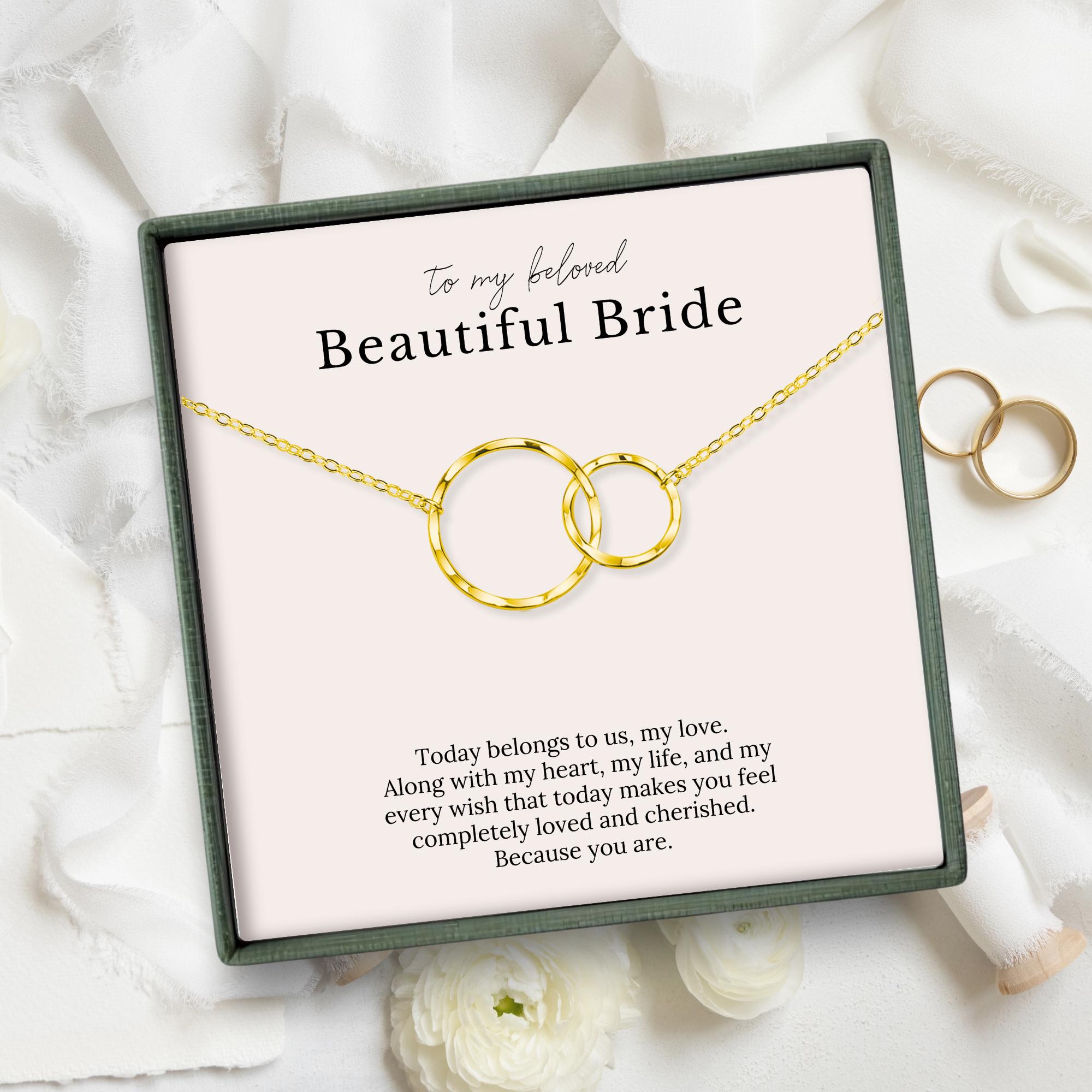bride gift from groom, two ring necklace, gold silver wedding jewelry, wedding day gift for bride, meaningful wedding keepsake, sentimental bridal gift, romantic necklace for her, love message card, to my bride jewelry, elegant bride present, minimalist wedding necklace, bride morning gift