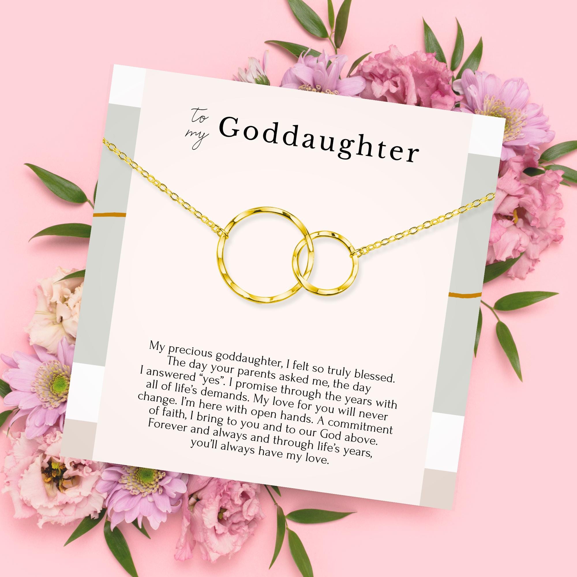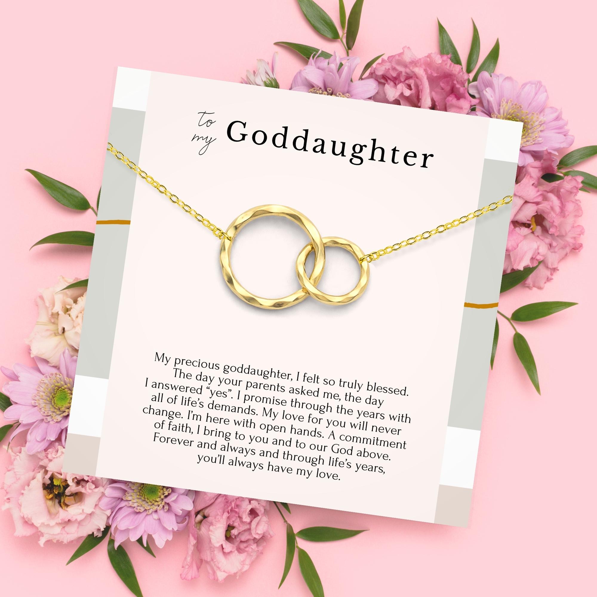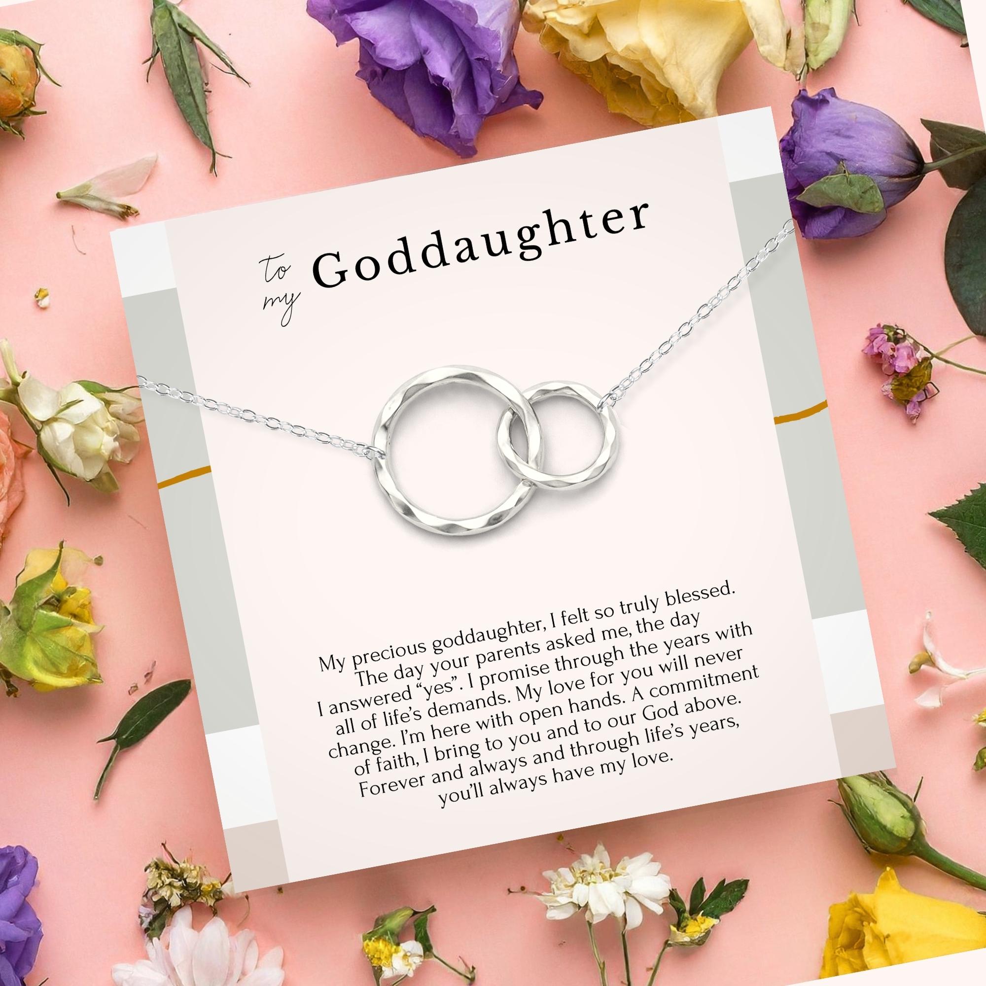 Goddaughter Necklace Gifts from Godmother, Goddaughter Baptism gift, Sterling silver 14K gold filled Interlocking circles necklace