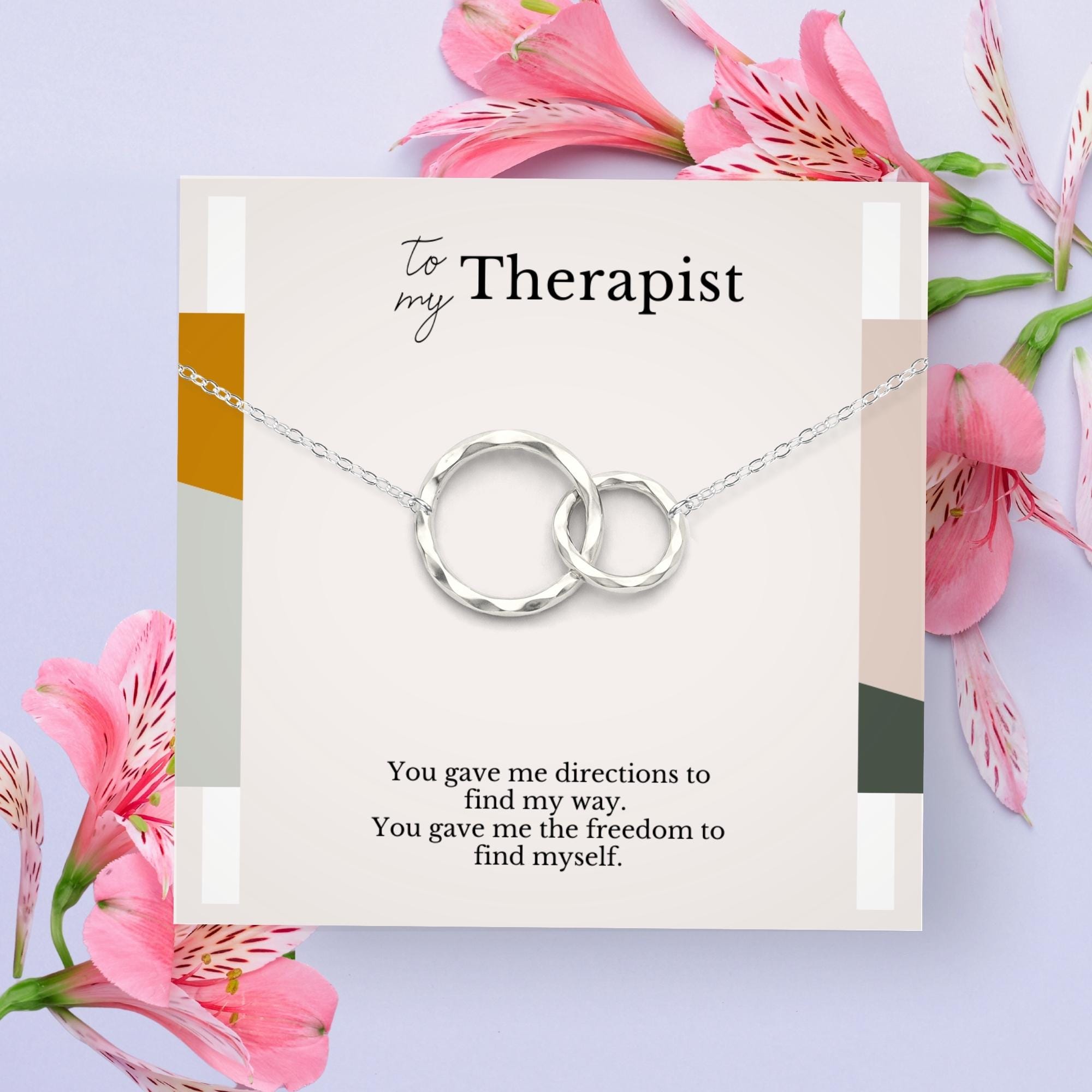 therapist thank you gift, counselor appreciation jewelry, sterling silver circles necklace, holiday gift for therapist, meaningful jewelry gift, thank you necklace for counselor, therapist Christmas gift, support and healing keepsake, minimalist appreciation gift, emotional thank you present