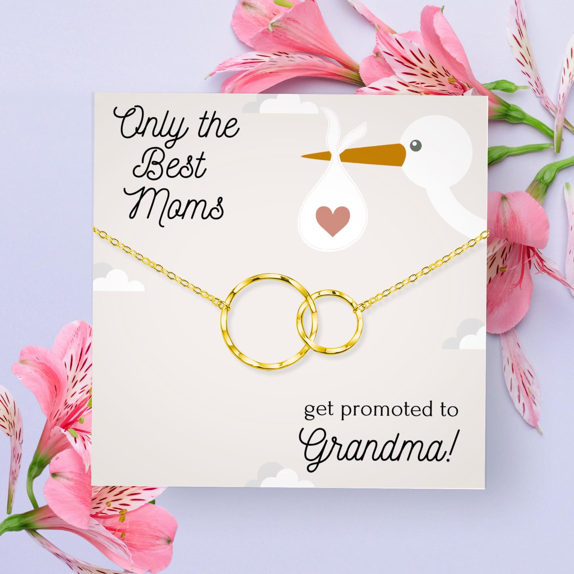 Have you heard that only the best moms get promoted to grandma? Well it's true! Make sure she knows too, with this stunning interlocking circles necklace. Beautifully packaged with a meaningful message card, this is a gift she is sure to love.