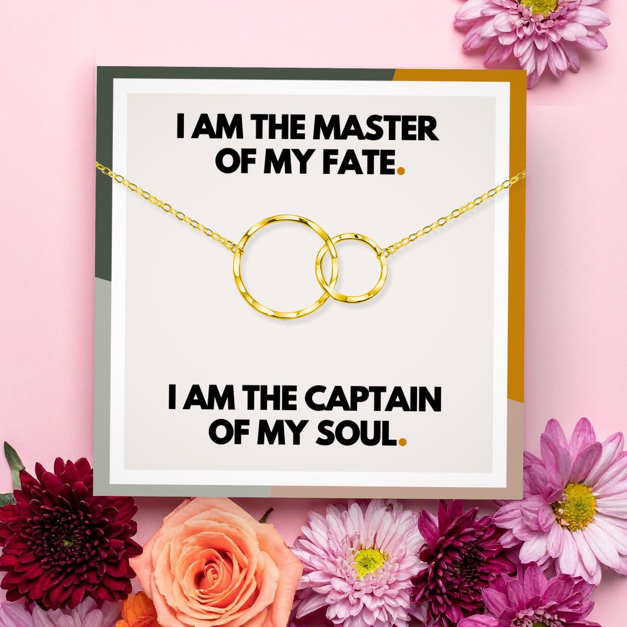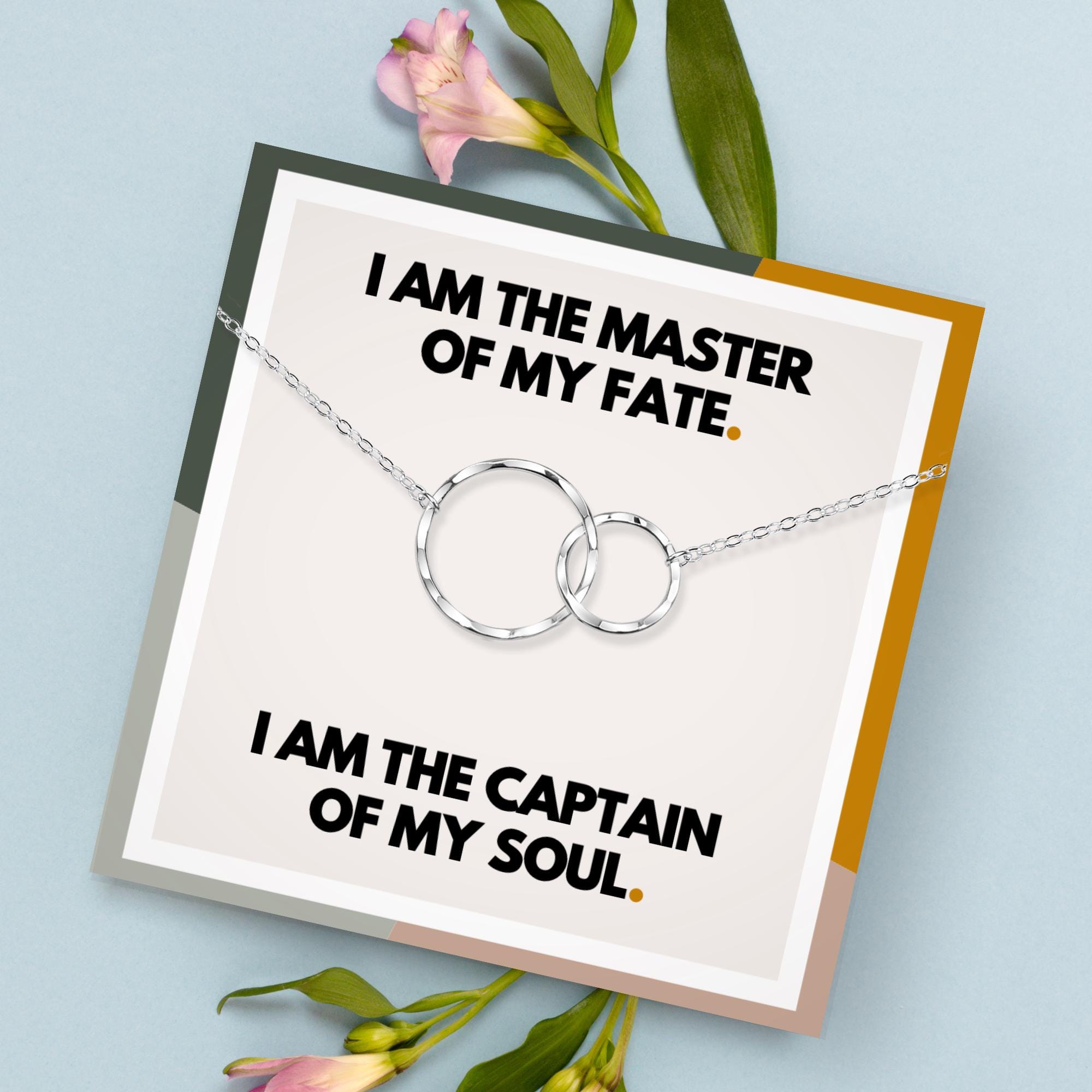 graduation gift, breakup healing jewelry, AA gift, new beginnings gift, sterling silver empowerment necklace, personal growth jewelry, recovery milestone gift, motivational message card, I am the master of my fate necklace