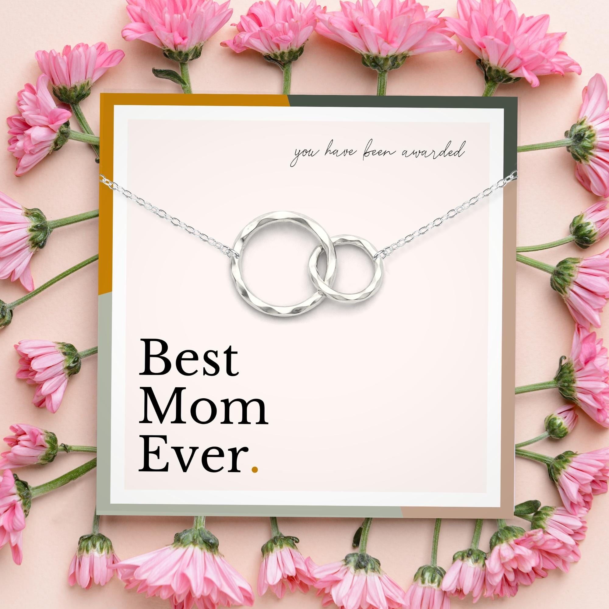 Our "Best Mom Ever" interlocking circles necklace is a truly special and unique piece of jewelry, perfect for showing the bond between a mother and her daughter. This necklace is not just a piece of jewelry, but a beautiful keepsake that captures the love and connection between a mother and daughter. Whether it's for Mother's Day, a birthday, or just because, this necklace makes for a thoughtful and loving gift.