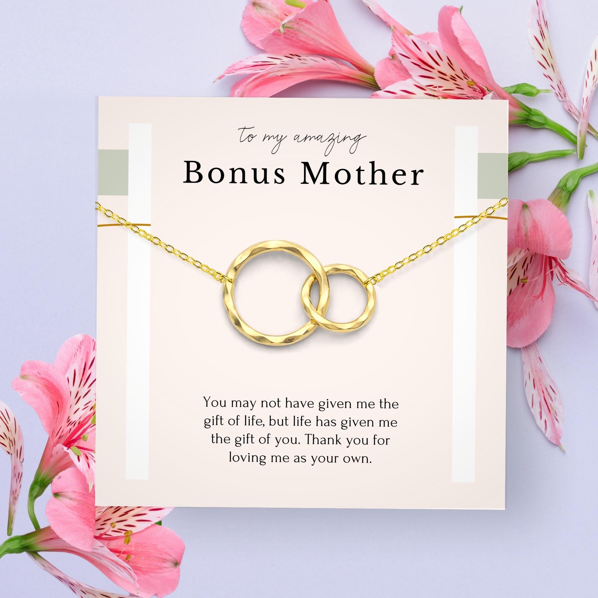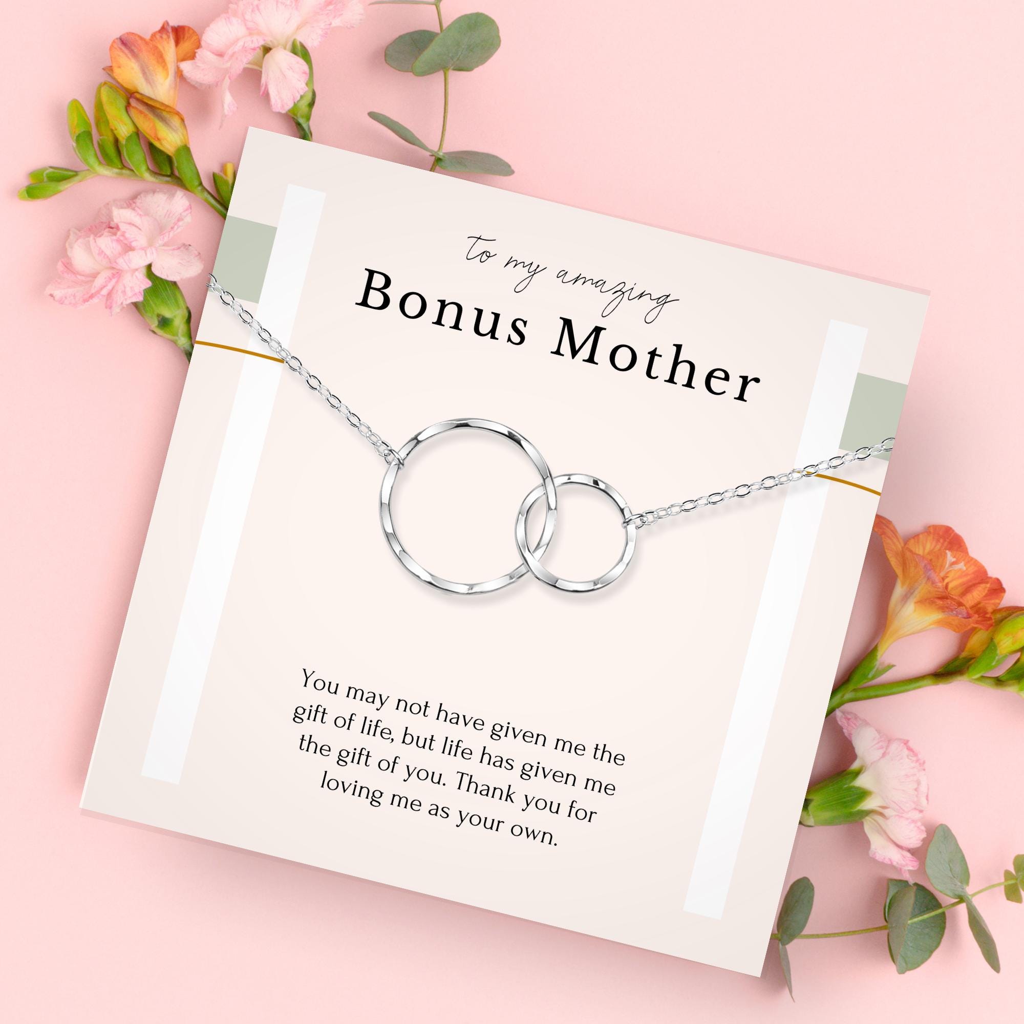 Celebrate the special bond with your bonus mom with our elegant necklace, a thoughtful gift for stepmothers at weddings or Mother's Day. Crafted with care, this necklace serves as a symbol of appreciation for the mother figure in your life. Whether she's a second mom, adoptive mom, or mother-in-law, this necklace is a heartfelt token of gratitude. Show your love and appreciation with this meaningful and timeless piece that she'll cherish forever.