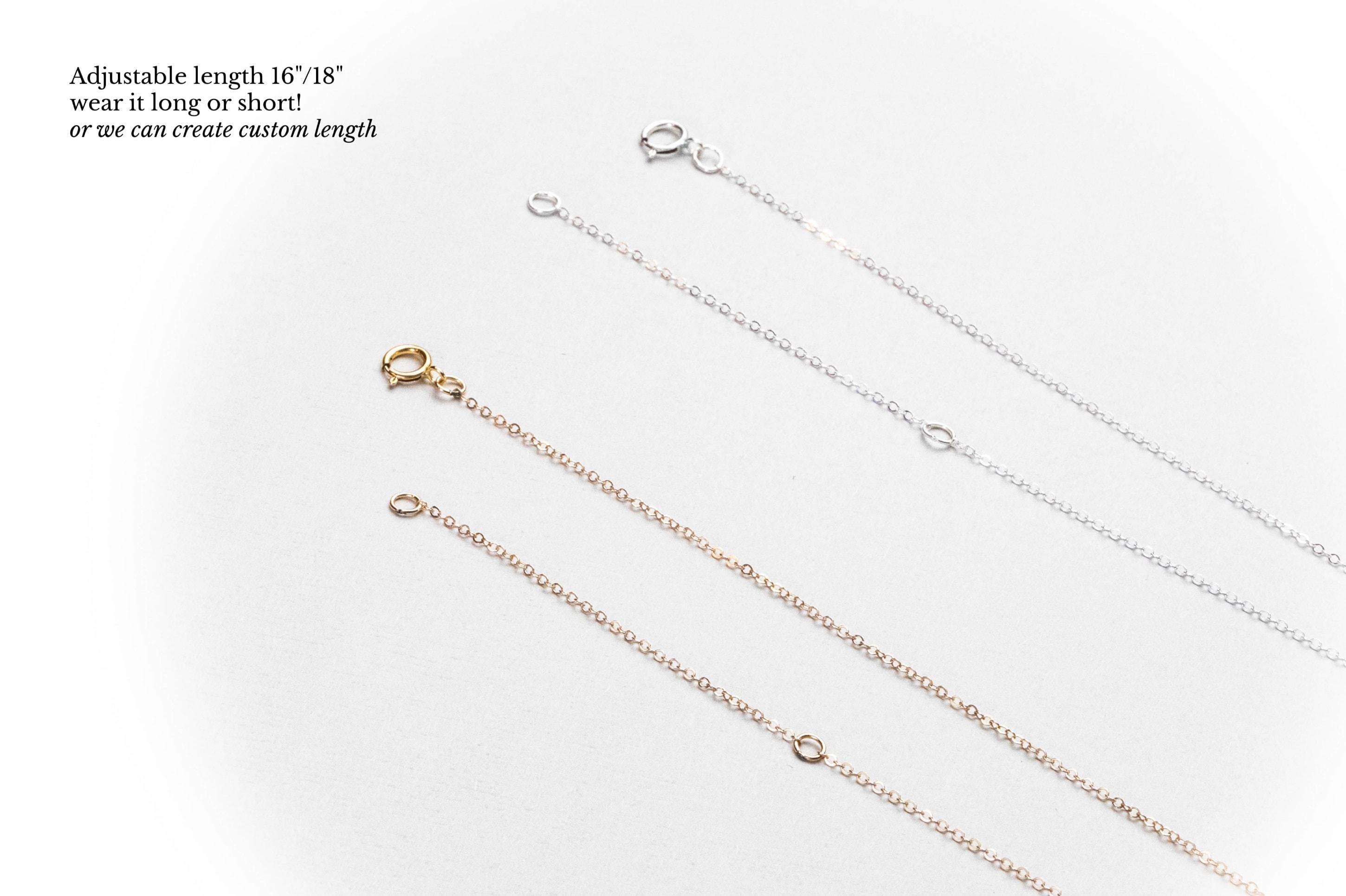 - Necklace is 18” long with adjustable hook at 16”. To request a custom length, please leave us a message at checkout.