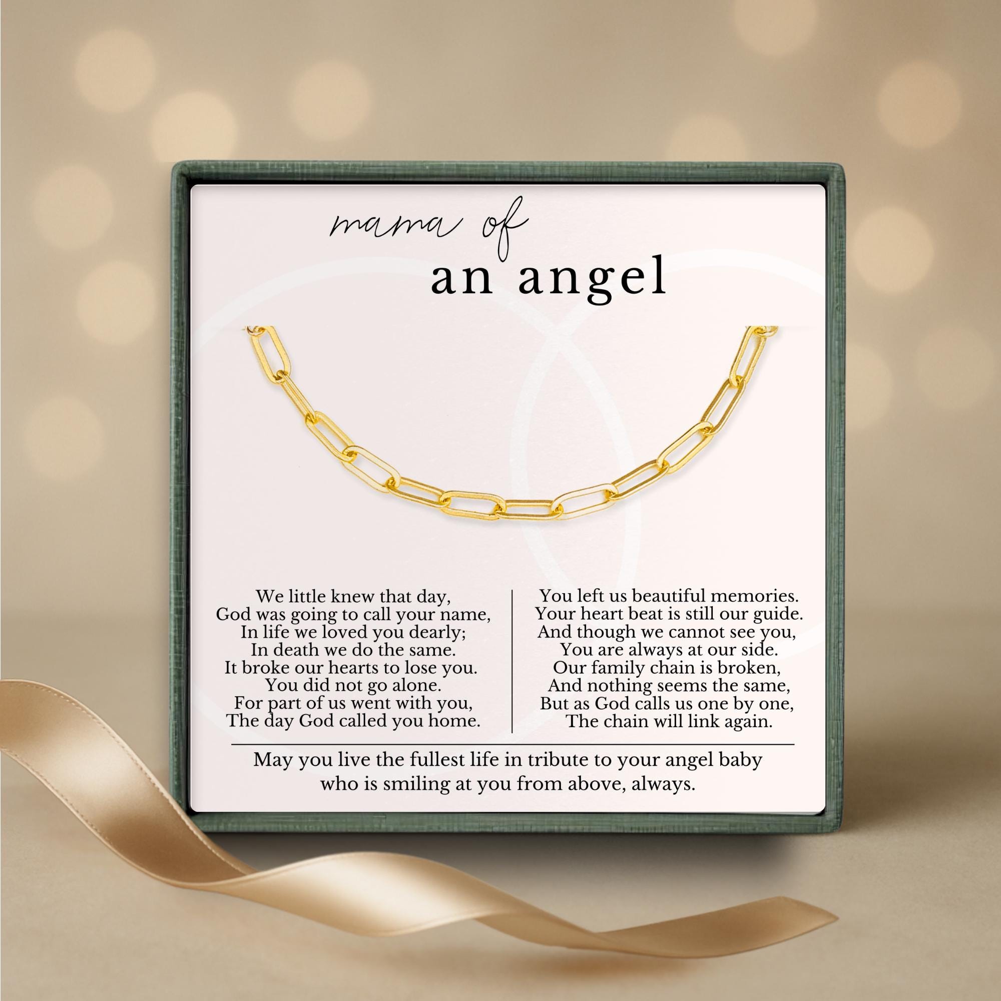 The Golden Chain symbolize the eternal bond between you and your angel baby. To serve as a daily reminder that two of you will reunite. Until then, make stories you can share with your baby.
