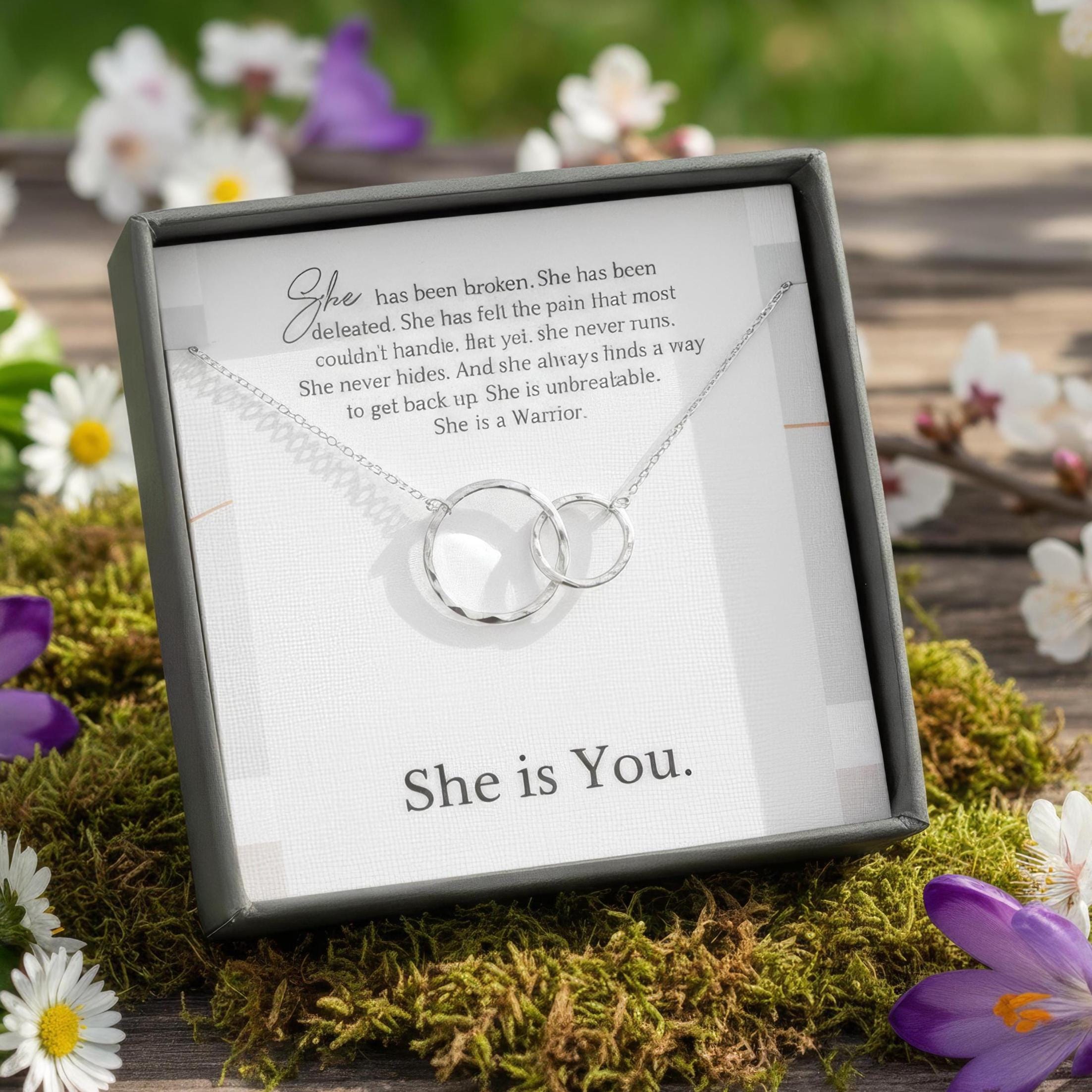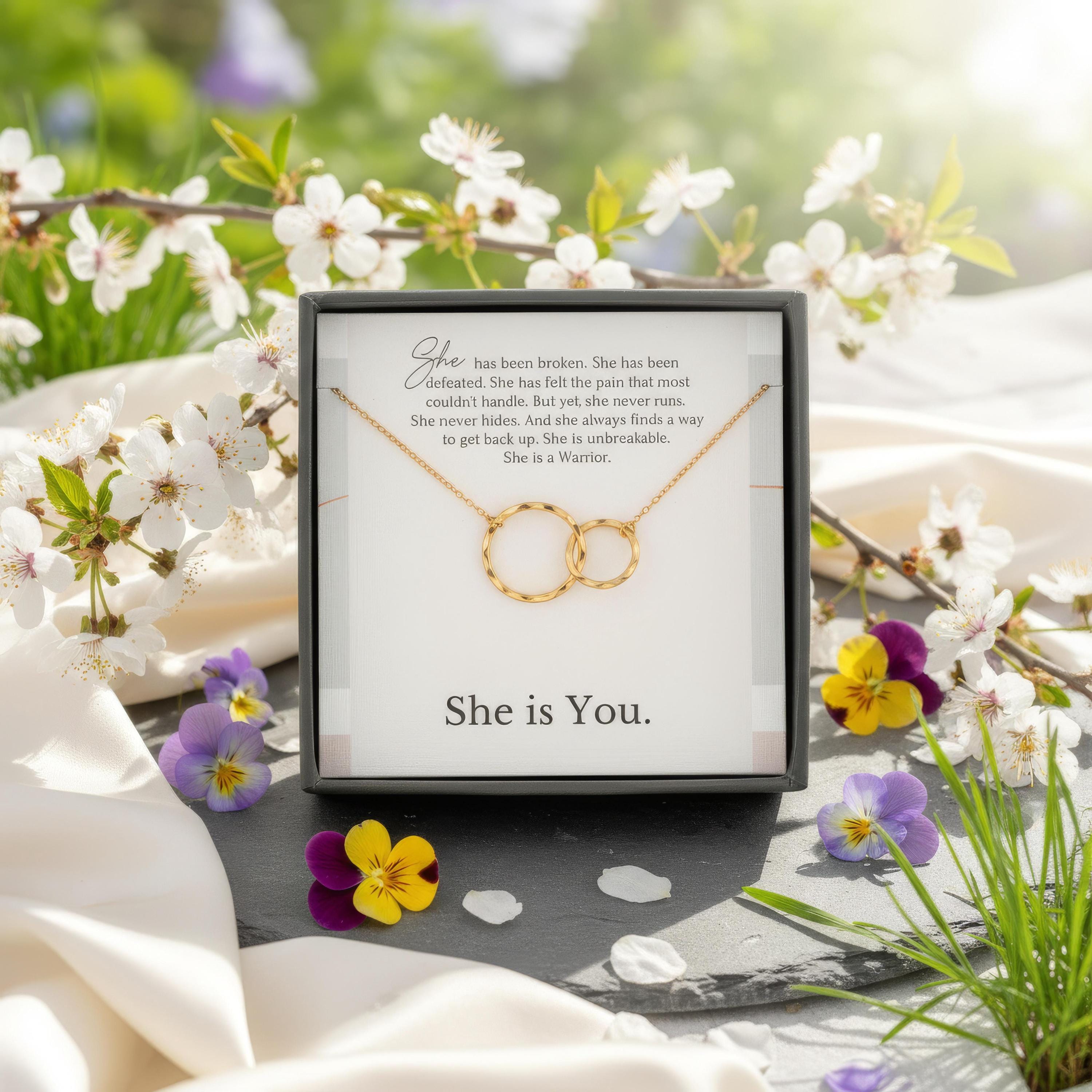 Celebrate resilience and strength with the She Is You – Warrior Strength Necklace, a meaningful and inspiring gift for women. Crafted with care, this stunning gold interlocking rings necklace symbolizes unity, empowerment, and overcoming life's challenges. Whether you're honoring a friend, loved one, or yourself, this necklace serves as a powerful reminder that you are stronger than any setback.