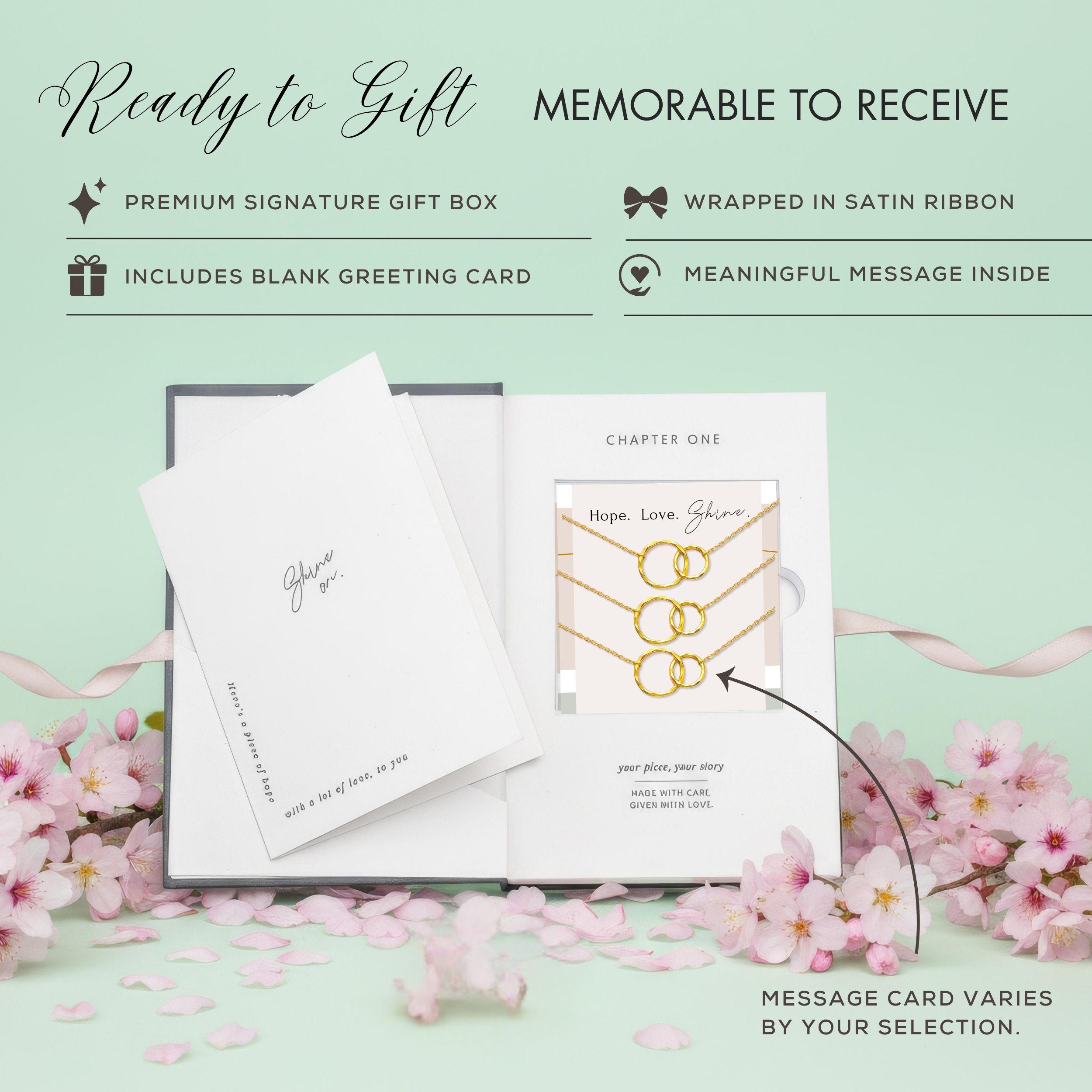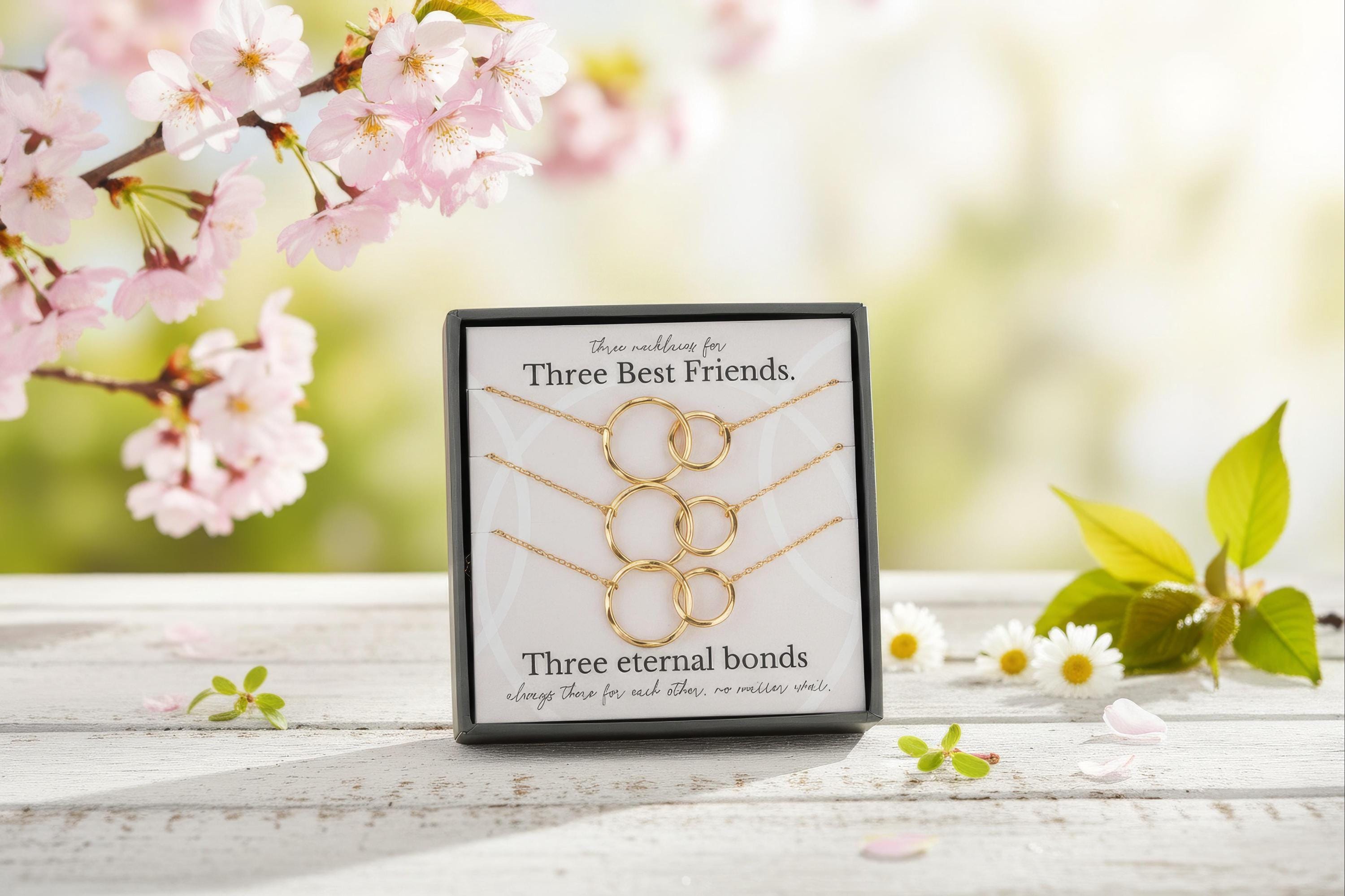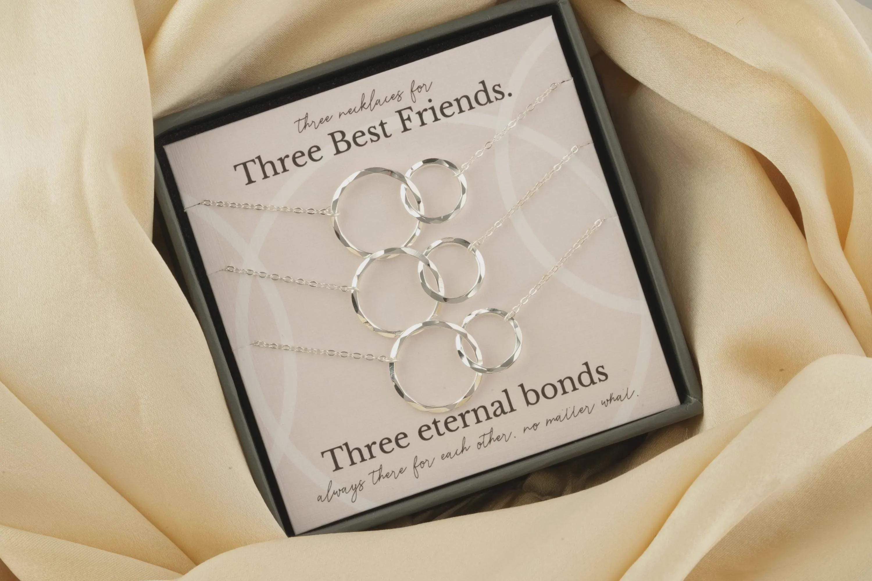 You may not be related by blood, but that doesn't make your bond any less special. Beautifully packaged, this gift is ready to give right away! Packaged as a set of 3 two ring necklaces - one for each friend.