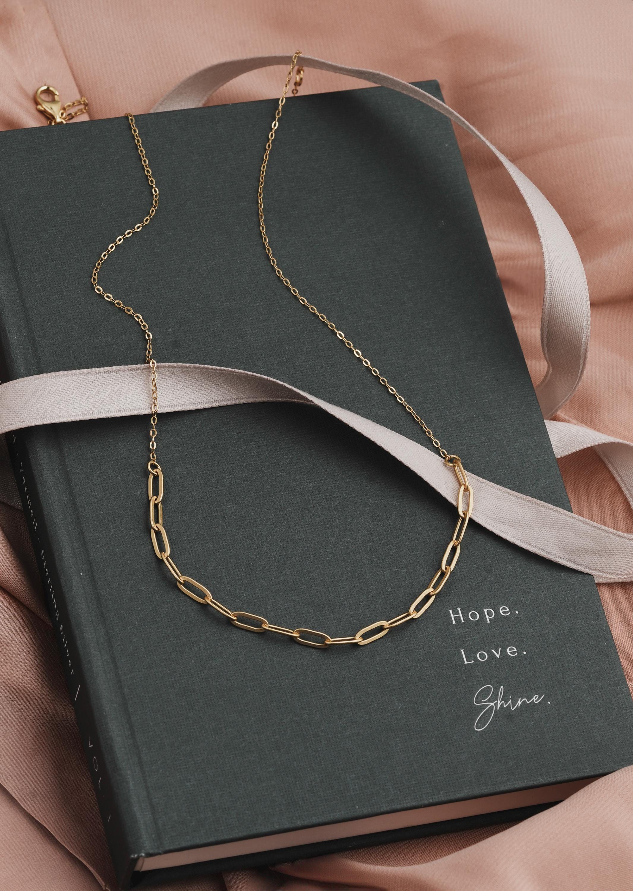 - Made with 14K Gold filled chain and 14K gold plated brass links.