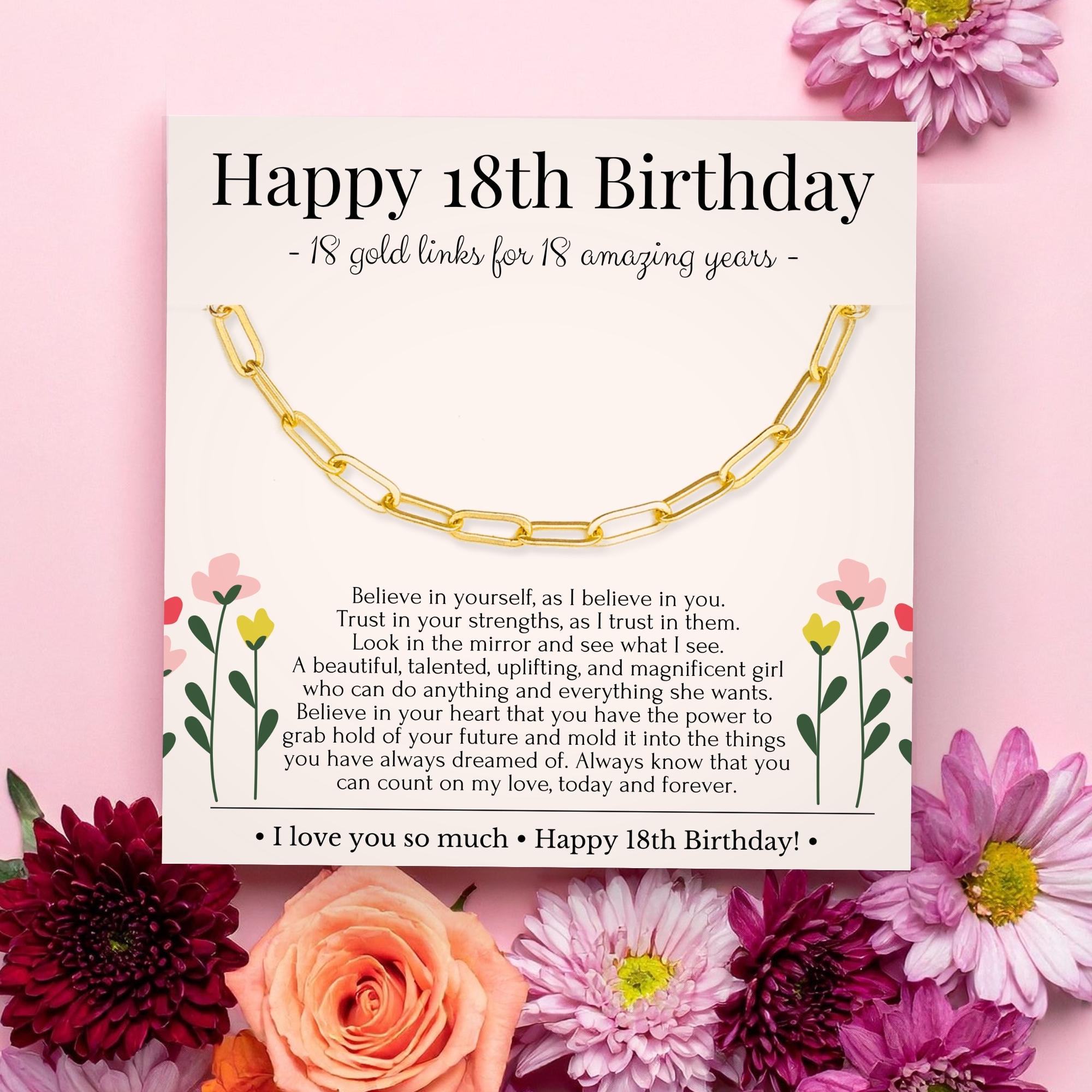 Mark a cherished milestone with this elegant necklace, designed to celebrate the joy of a happy 18th birthday and the promise of new beginnings. Featuring 18 delicate gold paperclip links, each symbolizes a year of growth, making it an ideal 18th birthday gift for daughters, nieces, or any young woman stepping confidently into adulthood. This thoughtful piece pairs beautifully with celebrations like birthday parties and commemorates this special chapter with timeless grace.