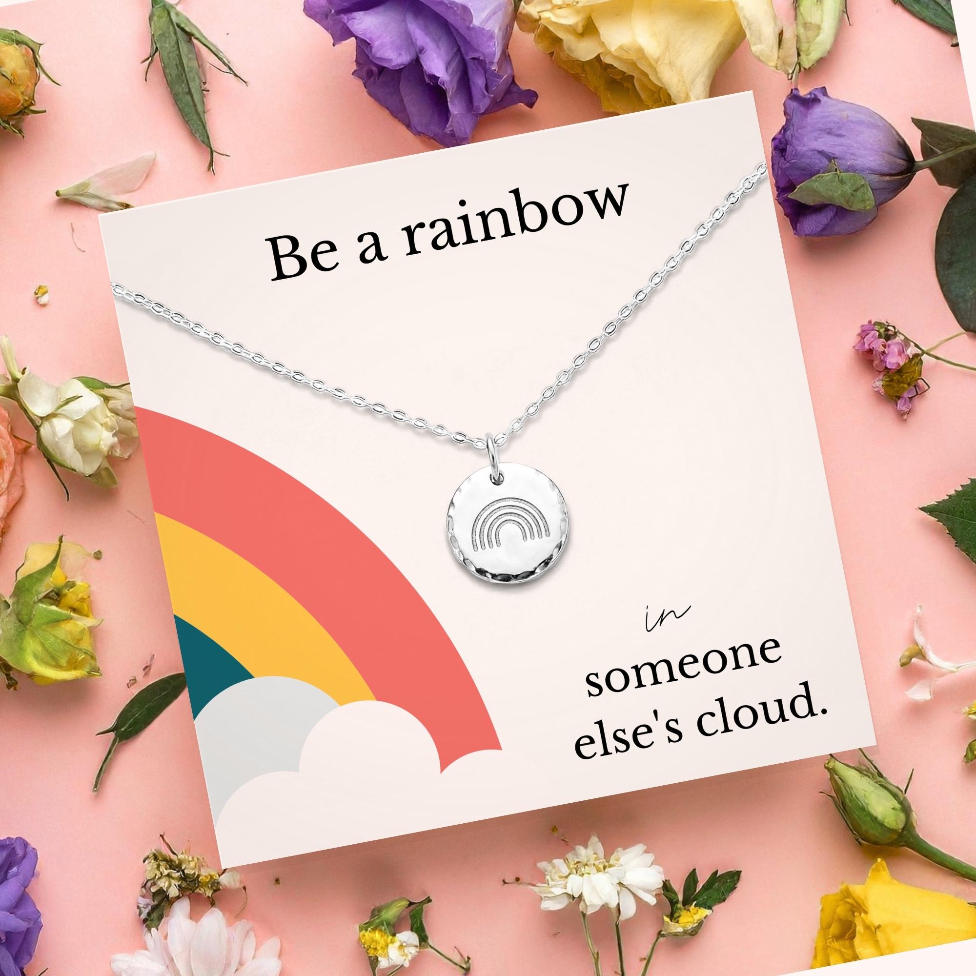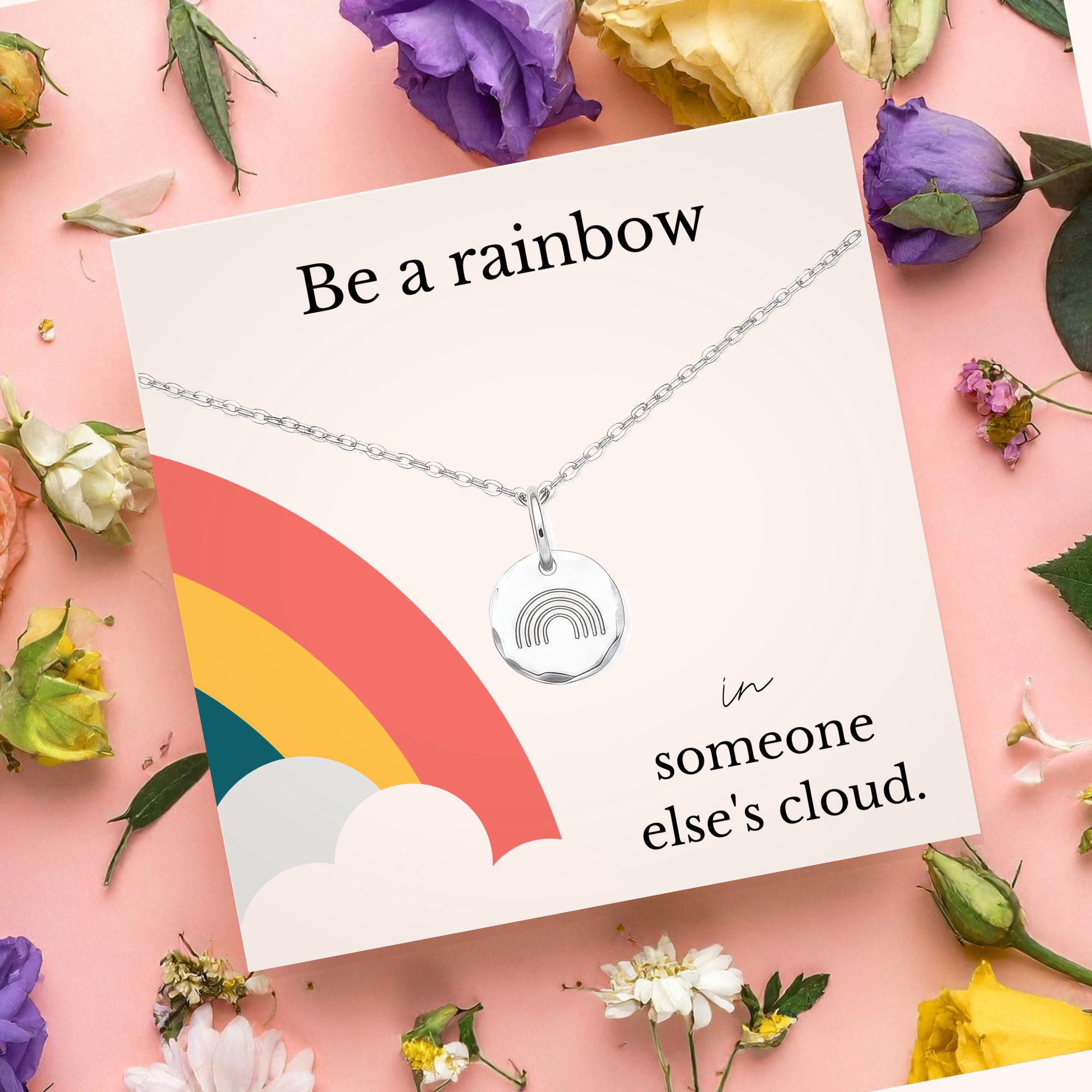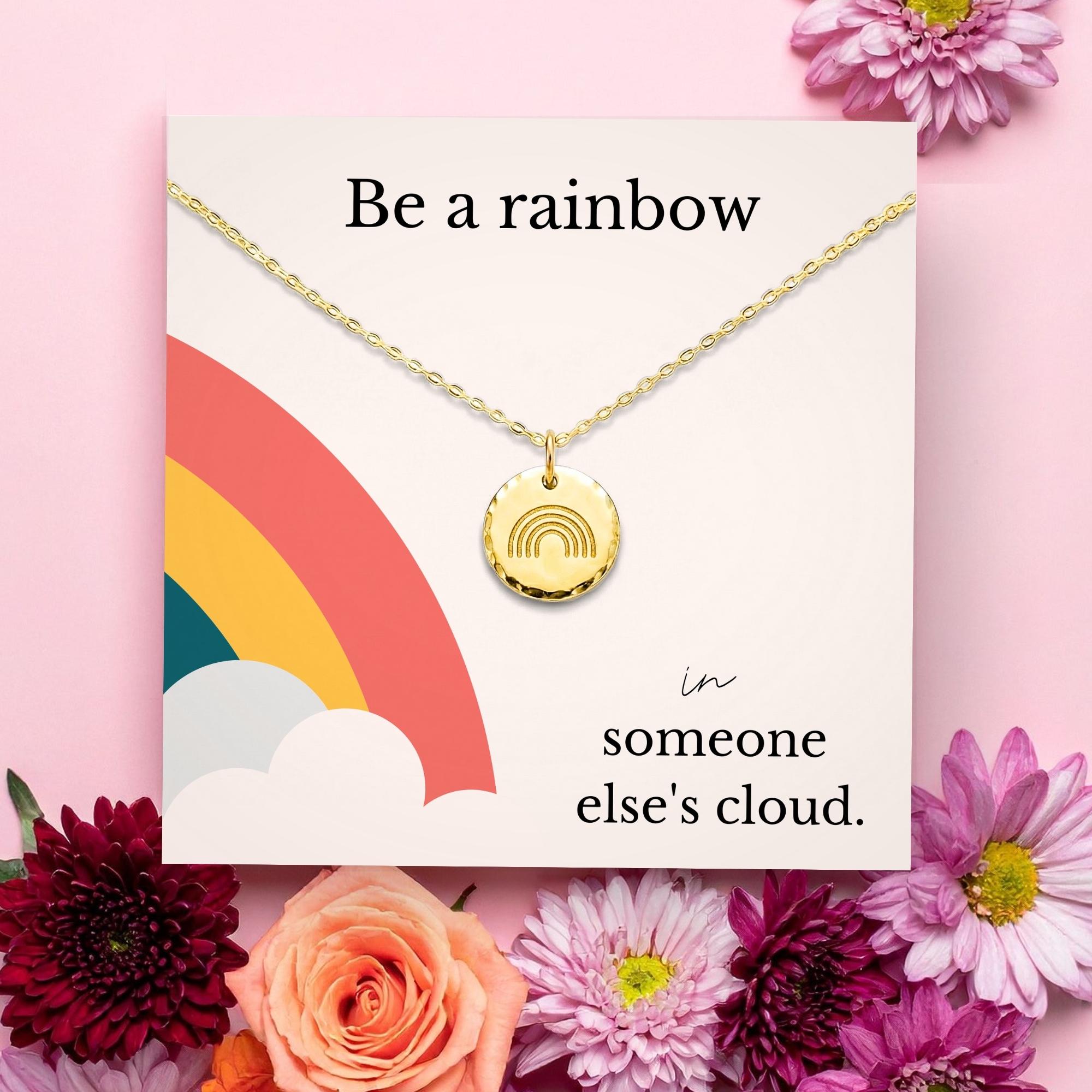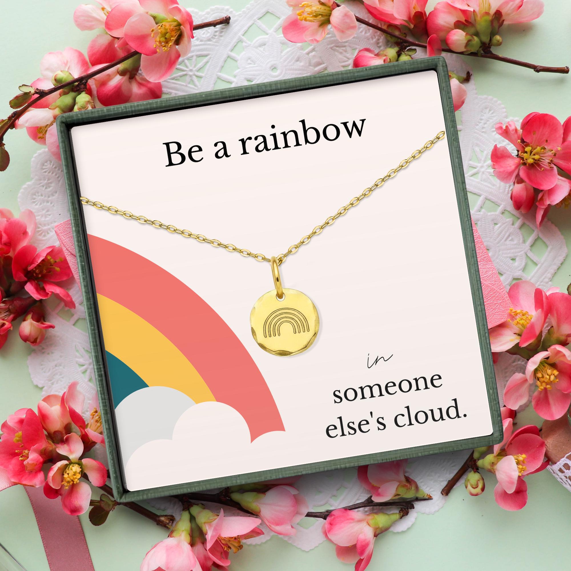 Be a rainbow in someone else's cloud with this dainty rainbow charm necklace. As Maya Angelou said, "good done anywhere is good done everywhere". This necklace serves as a sweet reminder that we all have it in us to cultivate loving kindness as a daily practice in your life.