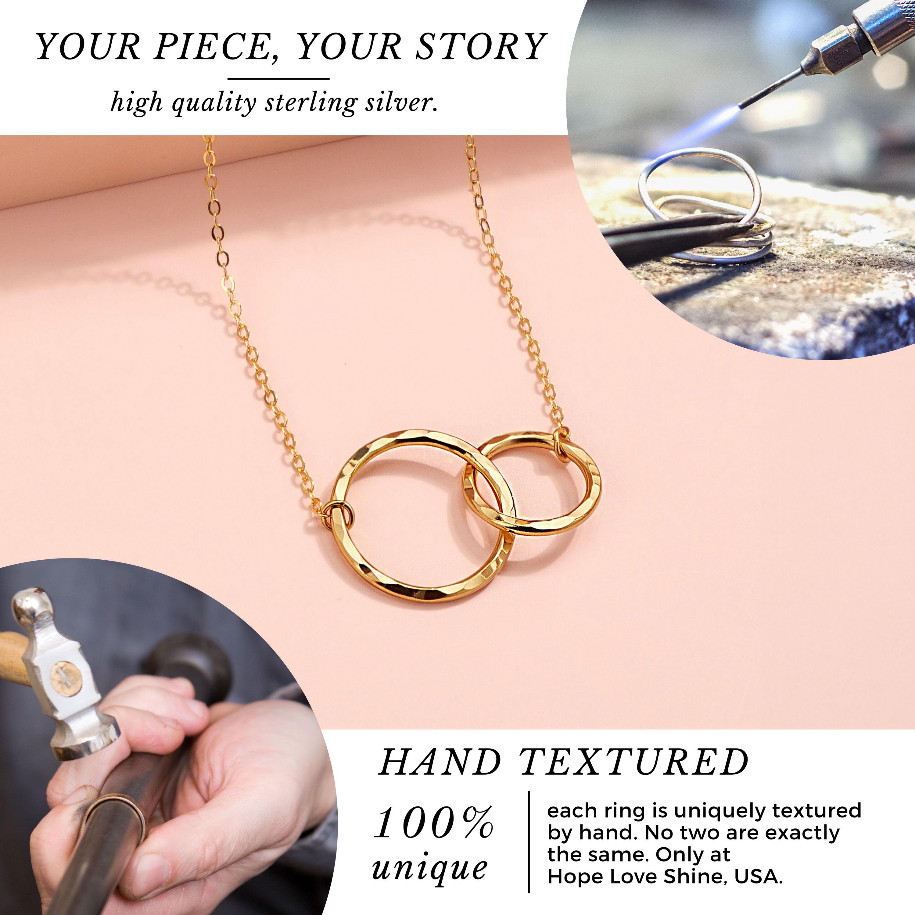 - Each pendant is textured by hand, creating a uniquely beautiful hammered finish that reflects light and sparkles with each movement. Every pendant has its own distinctive texture, no two are the same.