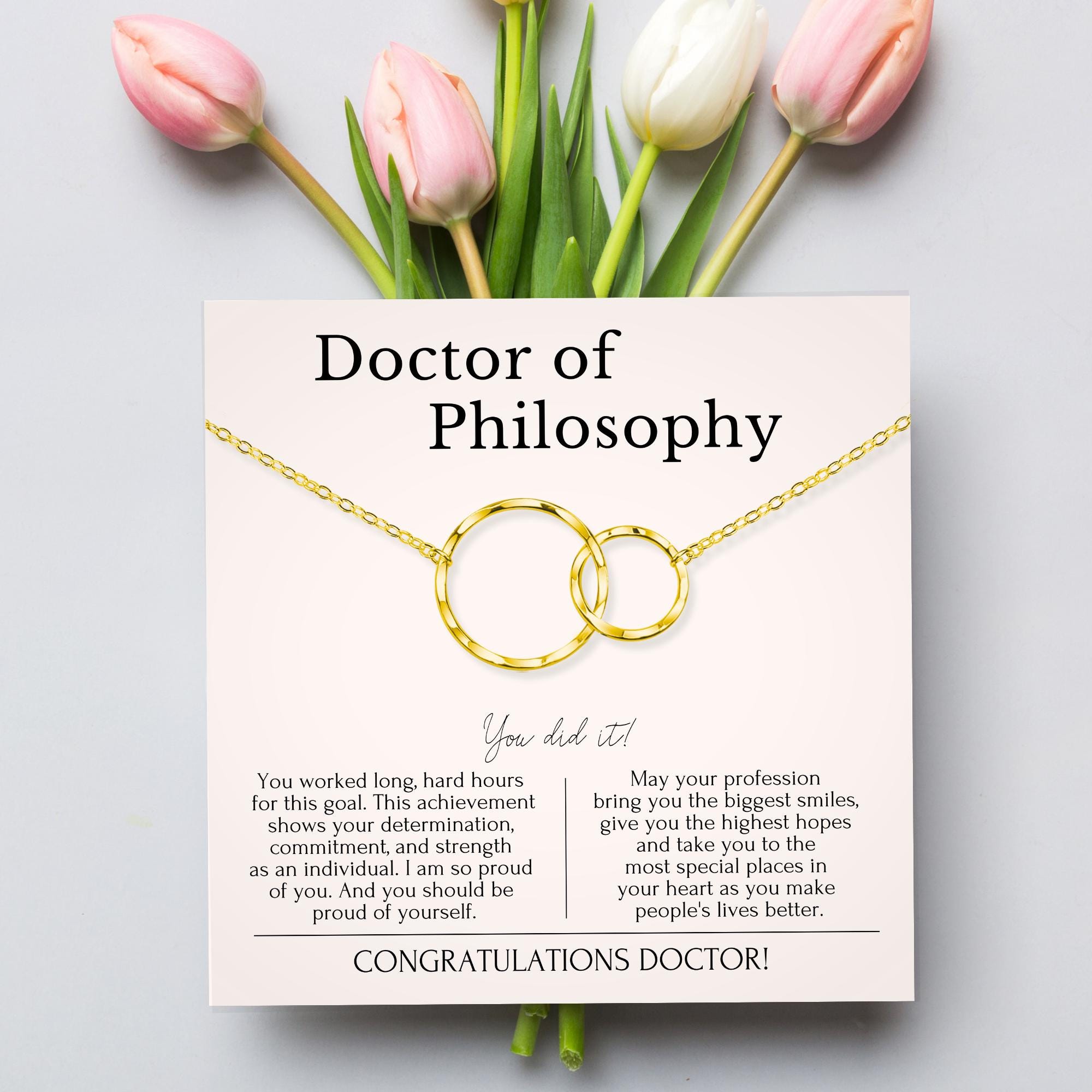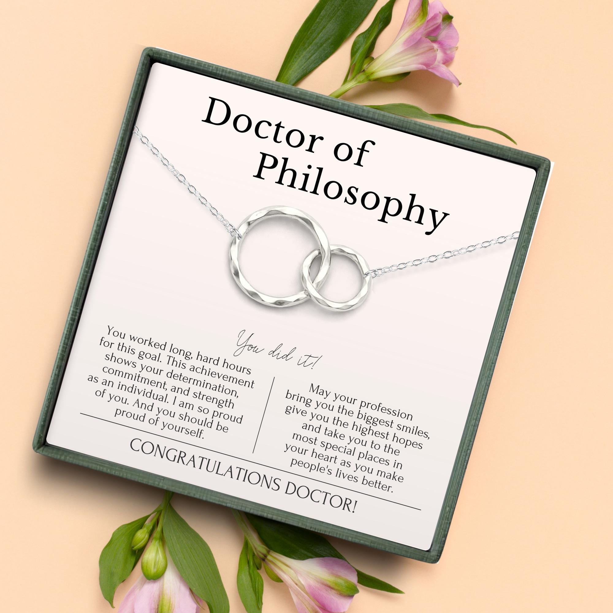 Honor the incredible achievement of earning a PhD with this elegant PhD Graduation Gift for Her, a heartfelt token of pride and recognition for all the dedication, hard work, and perseverance it takes to become a Doctor of Philosophy. Paired with a meaningful message card that celebrates her commitment and strength, this doctorate graduation necklace makes a perfect gift from family, friends, or loved ones. Whether you’re celebrating her hooding ceremony, commencement, or first steps into a professional career, this new doctor gift serves as a lasting reminder of how far she’s come and the lives she will touch. Ideal for any proud moment, this PhD necklace with card honors her journey and future with grace and meaning.