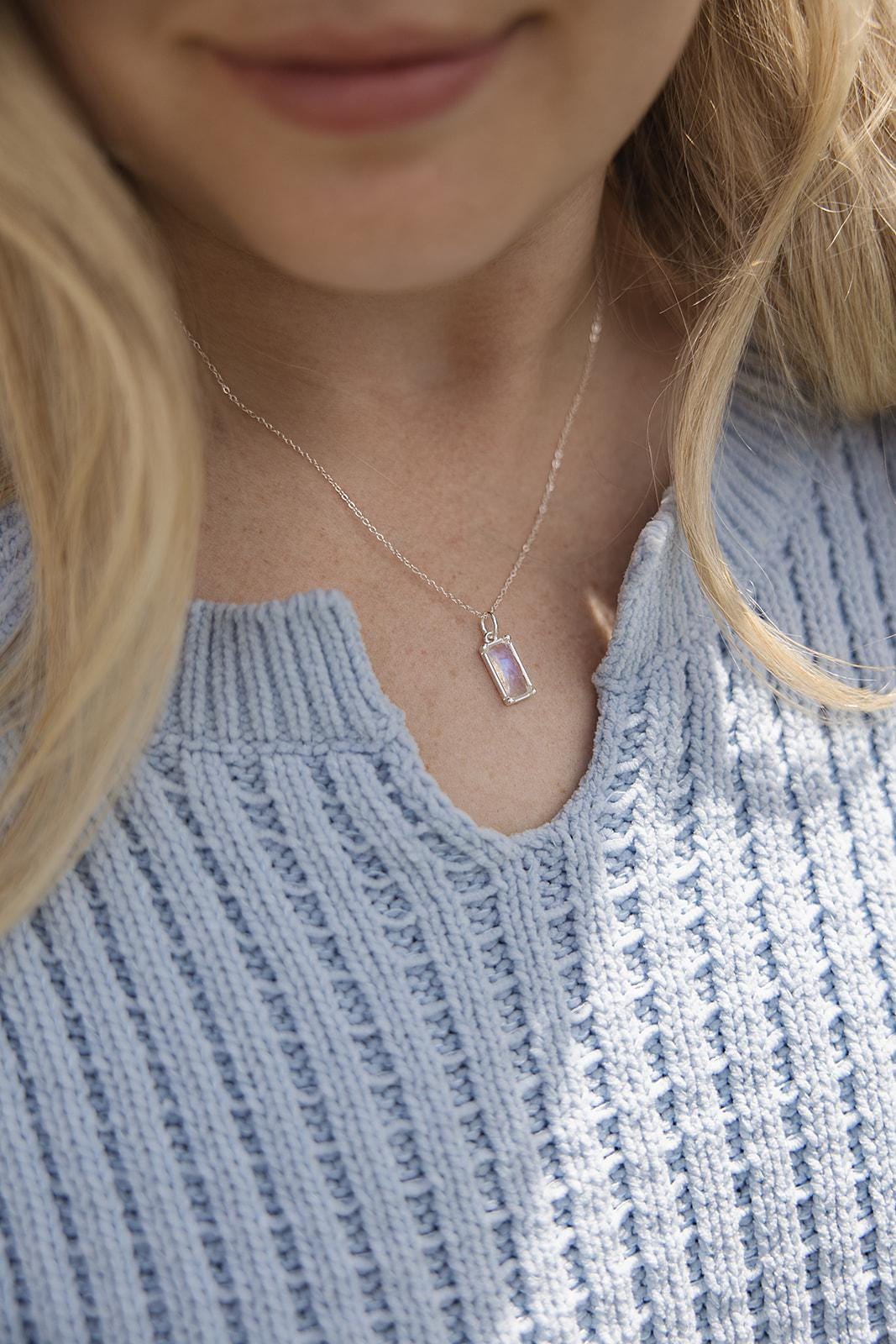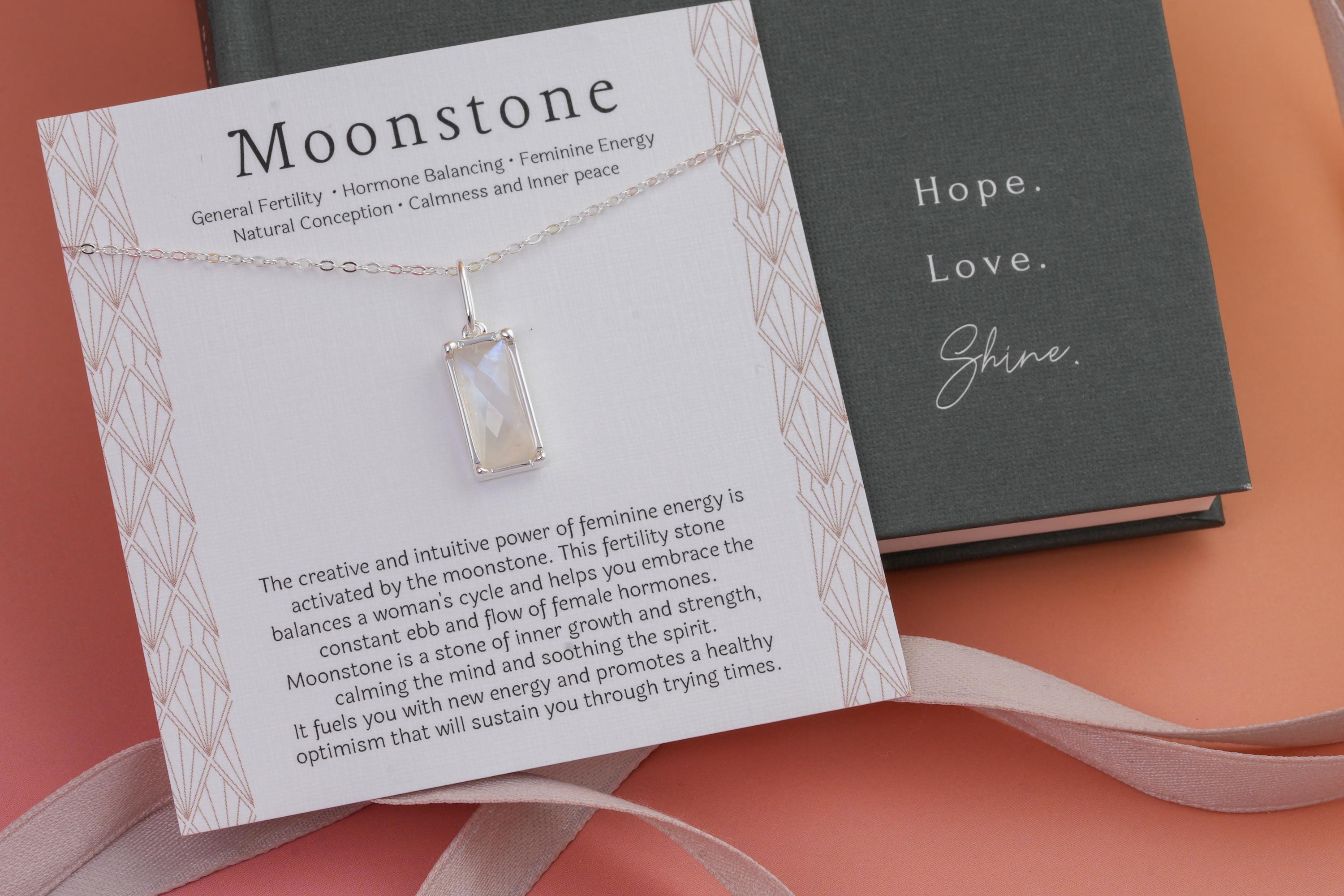 Experience the ethereal beauty and healing energy of our "Hope Love Shine" Rainbow Moonstone Necklace. Handcrafted with love, this dainty sterling silver necklace features a faceted rainbow moonstone, symbolizing strength and new beginnings. Whether as a fertility gift, strength jewelry, or a token of friendship, its radiant glow uplifts spirits. Perfect for Valentine's Day, Mother's Day, or offering solace during times of miscarriage or infertility, this stunning moonstone necklace is a meaningful and sentimental gift for anyone embarking on a journey of hope and resilience.